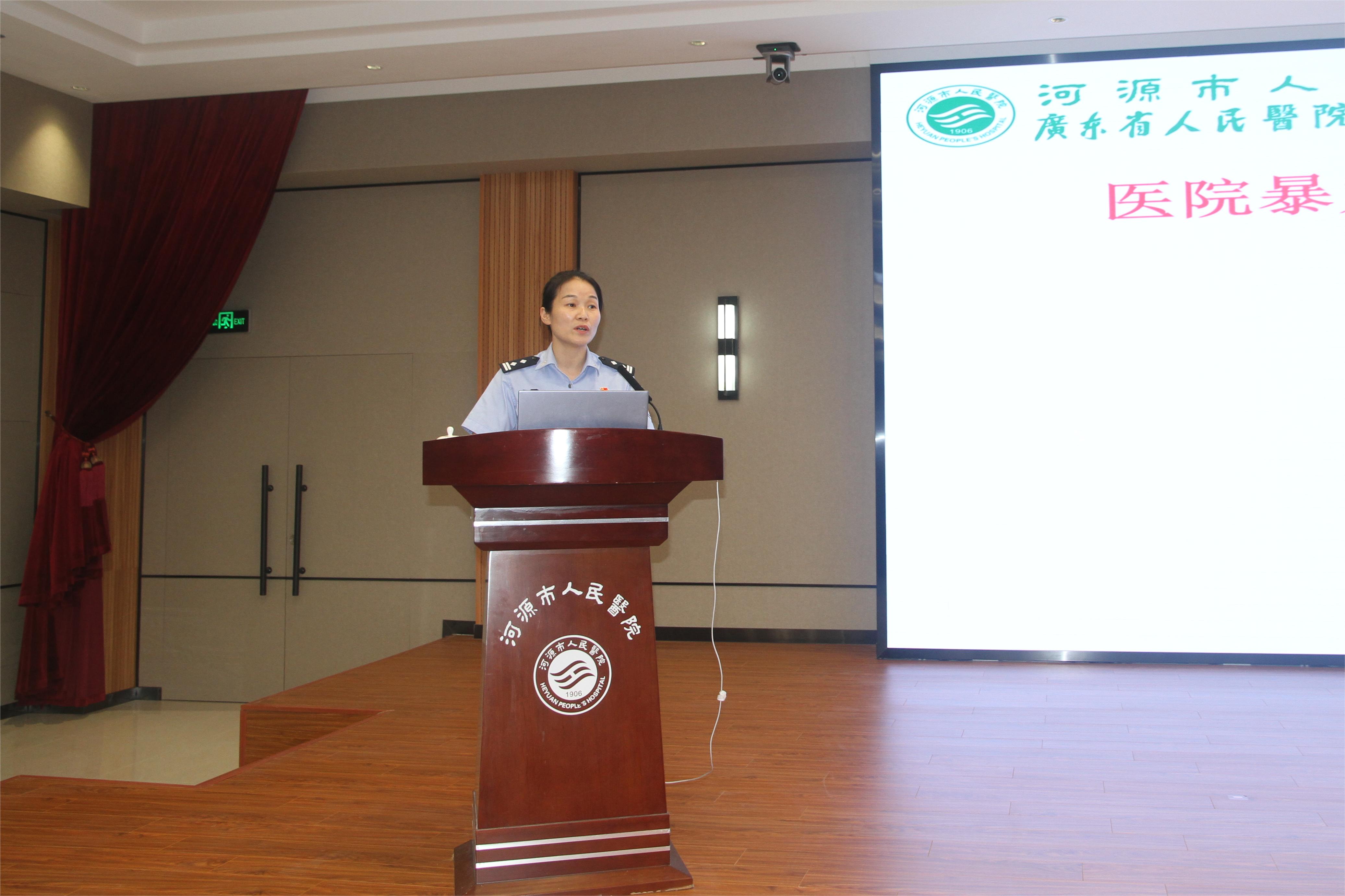 为预防暴力伤医事件,切实提高医护人员应对暴力伤医事件的防范意识和技能,增强医护人员的自我保护意识,保障医护人员的人身安全,6月21日下午,我院邀请了广东警官学院教授、广东警官学院党委关心下一代工委员会副主任荆长岭教授到我院开展 “医院暴力伤医行为的预防与处置对策”的专题培训。谢贤生副院长、河源市公安局治安支队杨聪政委、全院中层干部以及各科室骨干共250余人参加了此次培训。