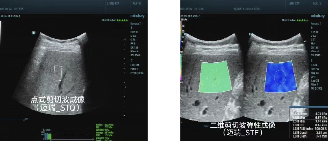 我院超声医学科拥有多台具备剪切波弹性成像的彩色超声诊断仪,如迈瑞 Resona 5、Resona 7等,目前已经开展肝脏超声弹性成像检查,并成功完成20余例,为临床医生提供更加精准的诊疗依据。