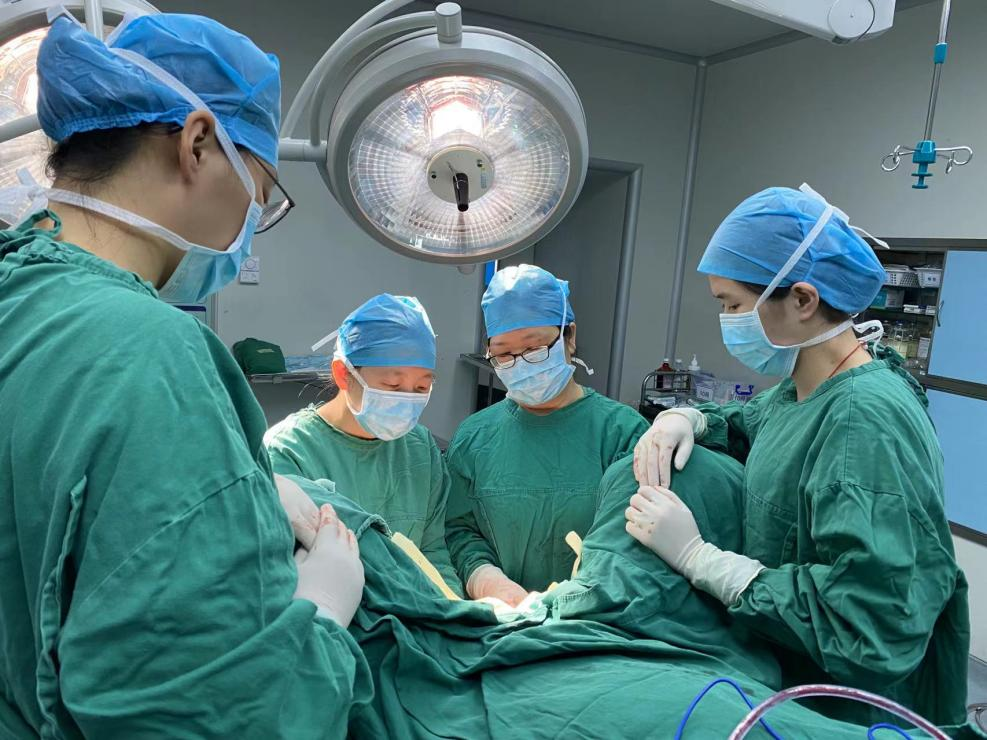 省医专家胡洁媚主任、李克红主任医师及妇科团队在手术中