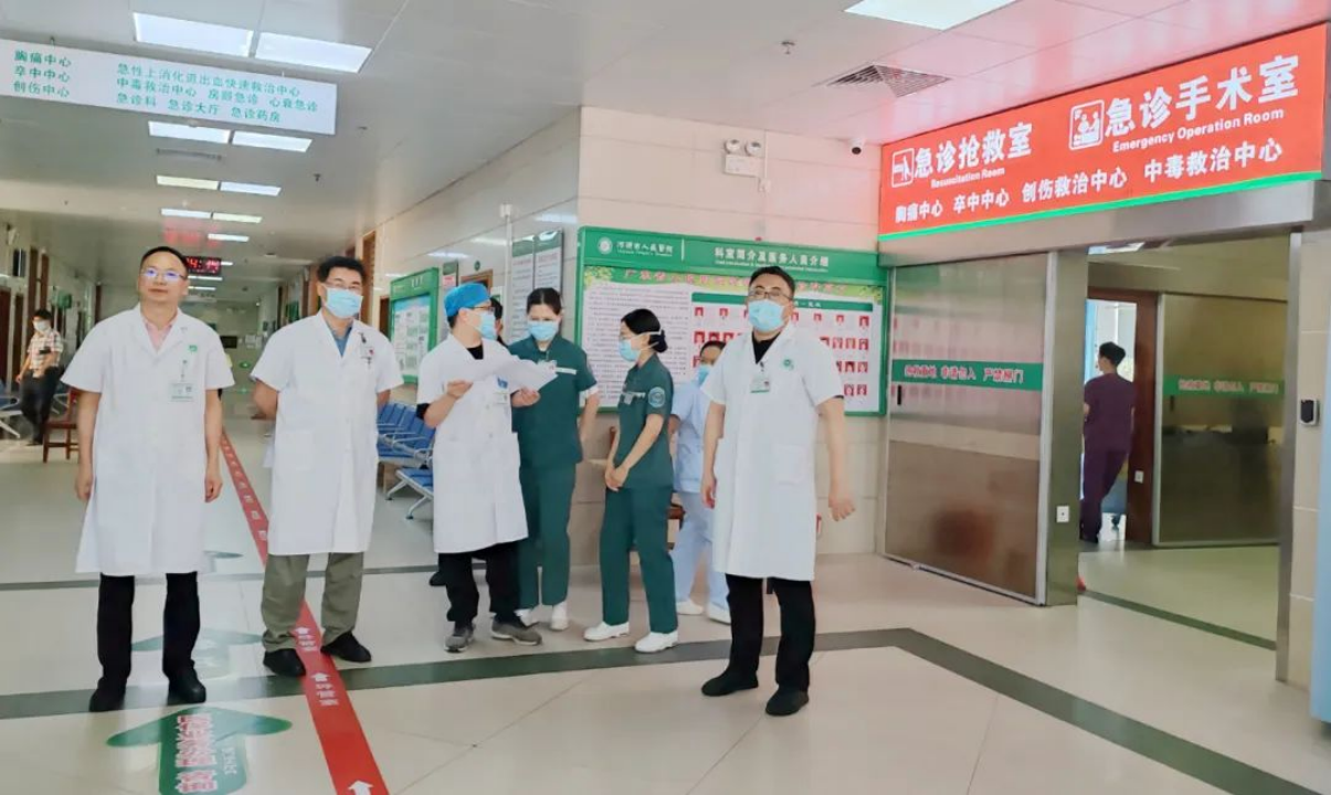 “科室所有休息人员20分钟内立即返回科室支援”,急诊科章雄军主任发出通知,《急诊科抢救资源配置和紧急调配预案》指导作业下,急诊科沈晓如护长立即致电护理部派人支援,同时致电总务科准备启动紧急医疗救援物资,一切“安排就绪”。