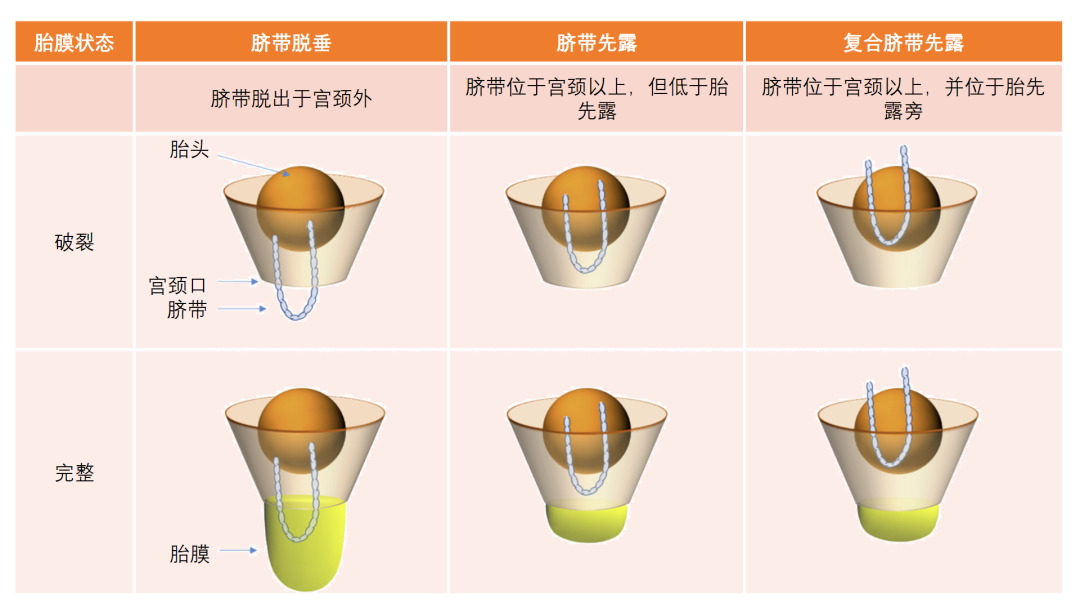 根据胎膜状态及脐带与宫颈的位置关系进行如下分类: