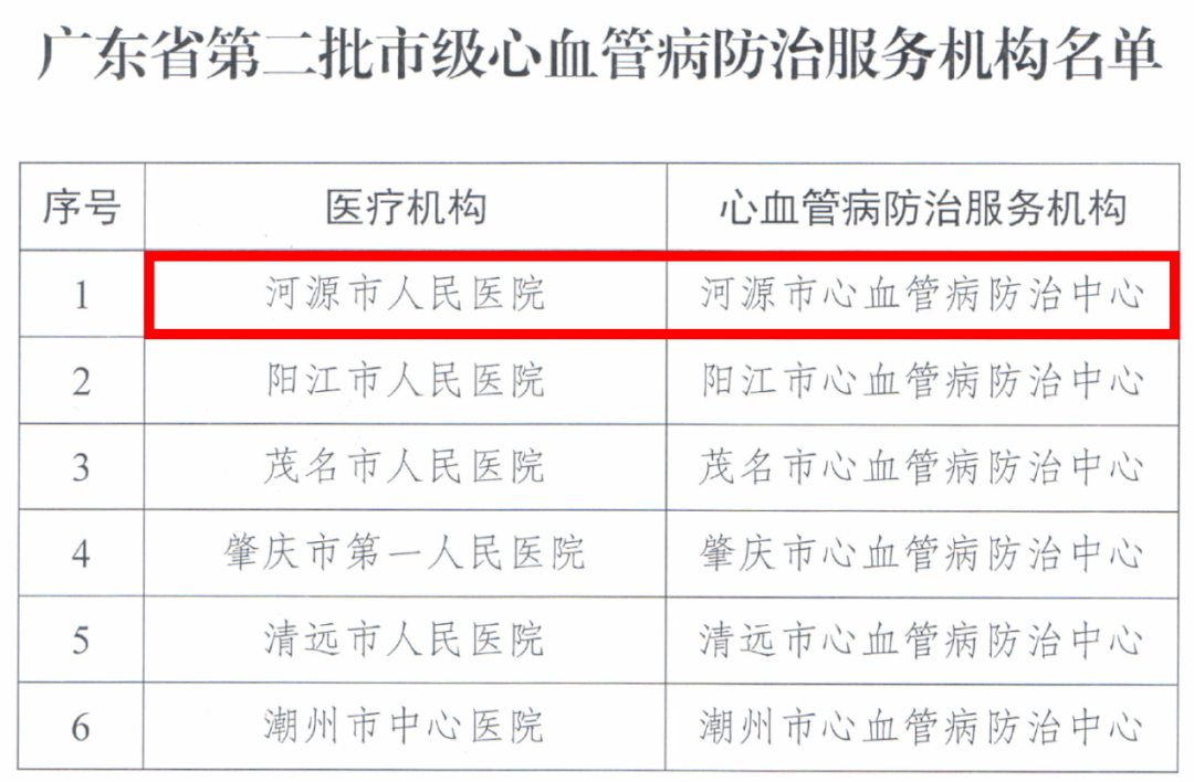 为认真贯彻落实“健康广东”行动以及卫生强省工作部署,扎实推进《健康广东行动(2019-2030年)》实施心脑血管疾病防治行动,结合我省卫生健康高质量发展要求,进一步推动建立与我省经济发展、人民需求相适应的心血管病防治体系,2023年7月8日,在河源市卫健局和相关部门的高度重视下,经过各地市卫生健康行政部门推荐、省级专家组复核评估和省卫生健康委办公室的详细讨论,省卫健委下发了建立地市、区级心血管病防治中心的通知,正式批准我院成为“广东省第二批市级心血管病防治中心”。