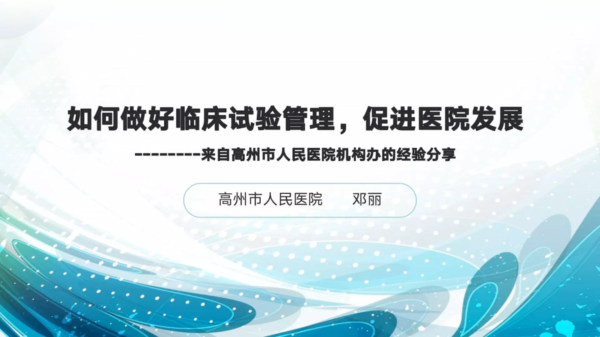 接着,邓丽主任从机构建设管理的角度出发(线上授课),就目前全国药物临床试验机构备案情况、开展临床试验的意义、文件体系建设、规范备案流程、机构管理模式、重视培训学习等内容作了全方位分享,讲解深入浅出、观点鲜明,激发奋进力量,达到了GCP备案动员效果。