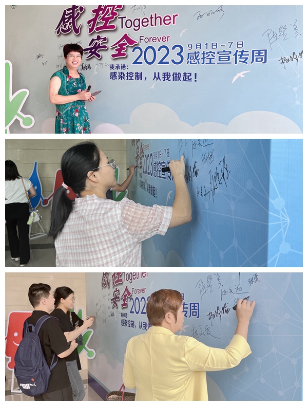 举办感控周活动是增强感控意识、提升感控能力和培育感控文化的一项重要举措。在启动大会前,科主任、护士长等纷纷在签名墙上签名承诺“感染控制,从我做起”。