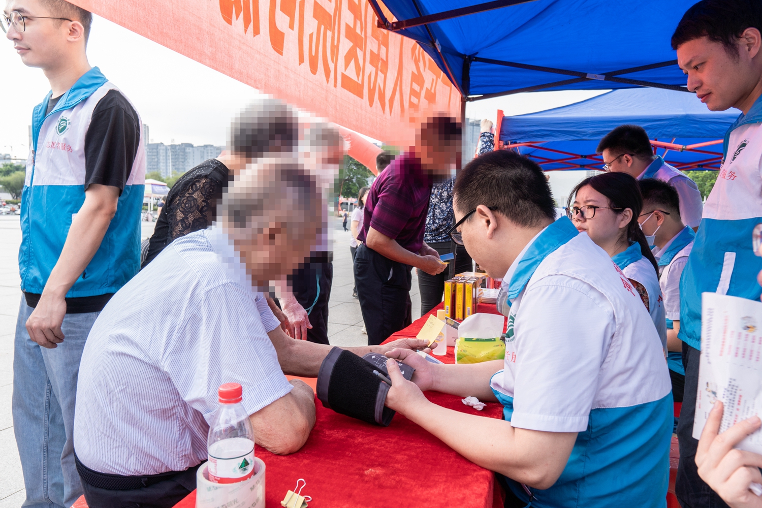 活动现场,药师为患者量血压,针对现场群众提出的用药疑难问题提供药物咨询,还为群众提供用药教育,旨在提高民众的用药安全。