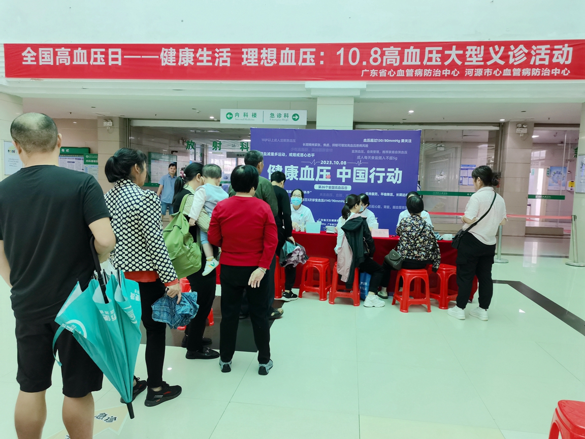 高血压是心脑血管疾病的危险因素,是最常见的心血管病,也是脑卒中和冠心病发病的最重要危险因素。2023年10月8日是第26个全国高血压日,今年的全国高血压日主题是:“健康生活,理想血压”。我院作为广东省第二批市级心血管病防治服务机构,为更好地在河源范围内唤起人们对高血压防治的重视,在广东省心血管病防治中心的统筹指导下,我院心血管内科专家团队在门诊一楼举办了“全国高血压日-健康生活,理想血压”大型义诊活动。我院心血管内科张惠琪主任医师、乐建华主任医师、黄少伦主任医师等7名专家及6名心血管病专科护士参加本次义诊活动。本次义诊活动主要内容有:为患者朋友提供免费健康咨询、体格检查、测量血压及血糖等诊疗服务,对于疾病需要进一步完善辅助功能检查、开具口服药物的患者,现场开辟了快速取药、快速完成相关辅助检查的全流程、一站式服务便民通道,进一步改善就医感受、提升患者体验。