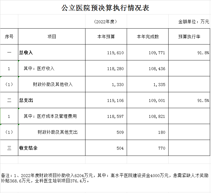河源市人民医院2022年财务信息公开