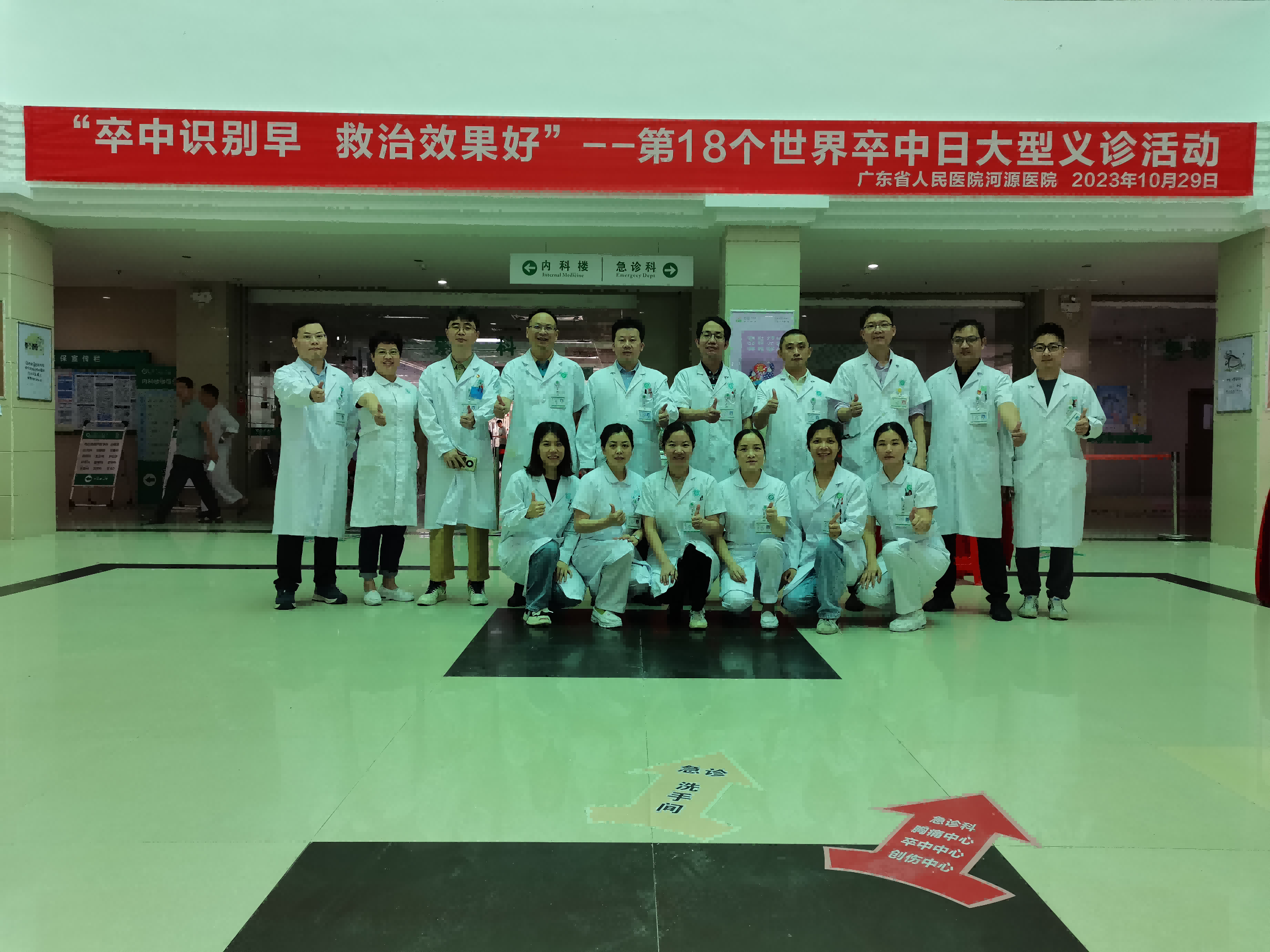 2023年10月29日是第十八个“世界卒中日”,今年的宣传主题和口号是:“卒中识别早,救治效果好”。广东省人民医院河源医院作为国家高级卒中中心,积极响应国家脑防委的号召,我院领导班子对这次活动十分重视,由医务部统一组织,神经内科牵头,联合神经外科、心血管内科、内分泌科、精神心理科等多学科专家团队,在院本部门诊楼一楼大厅举行大型义诊及科普公益活动,活动主要内容有:为患者朋友提供免费健康咨询、体格检查、测量血压及血糖等诊疗服务,对于疾病需要进一步完善辅助功能检查、开具口服药物的患者,现场开辟了快速开具医嘱、快速完成相关辅助检查的全流程、一站式服务便民通道,进一步改善就医感受、提升患者体验。