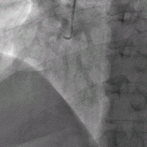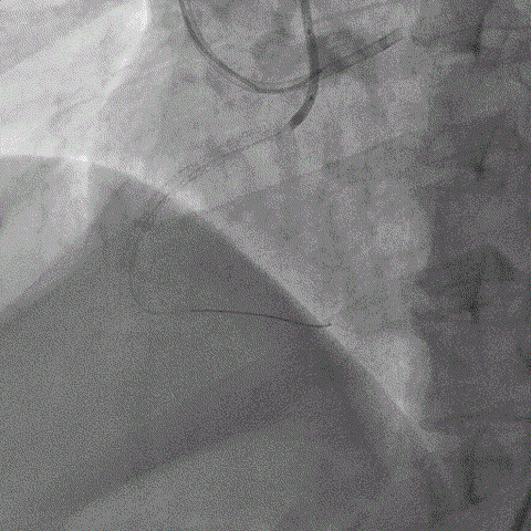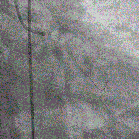 ▲右冠脉开通成功并植入支架