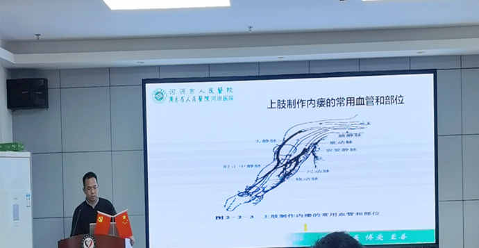 ▲肾内科一区主治医师叶昌荣在讲授上肢动静脉造瘘术