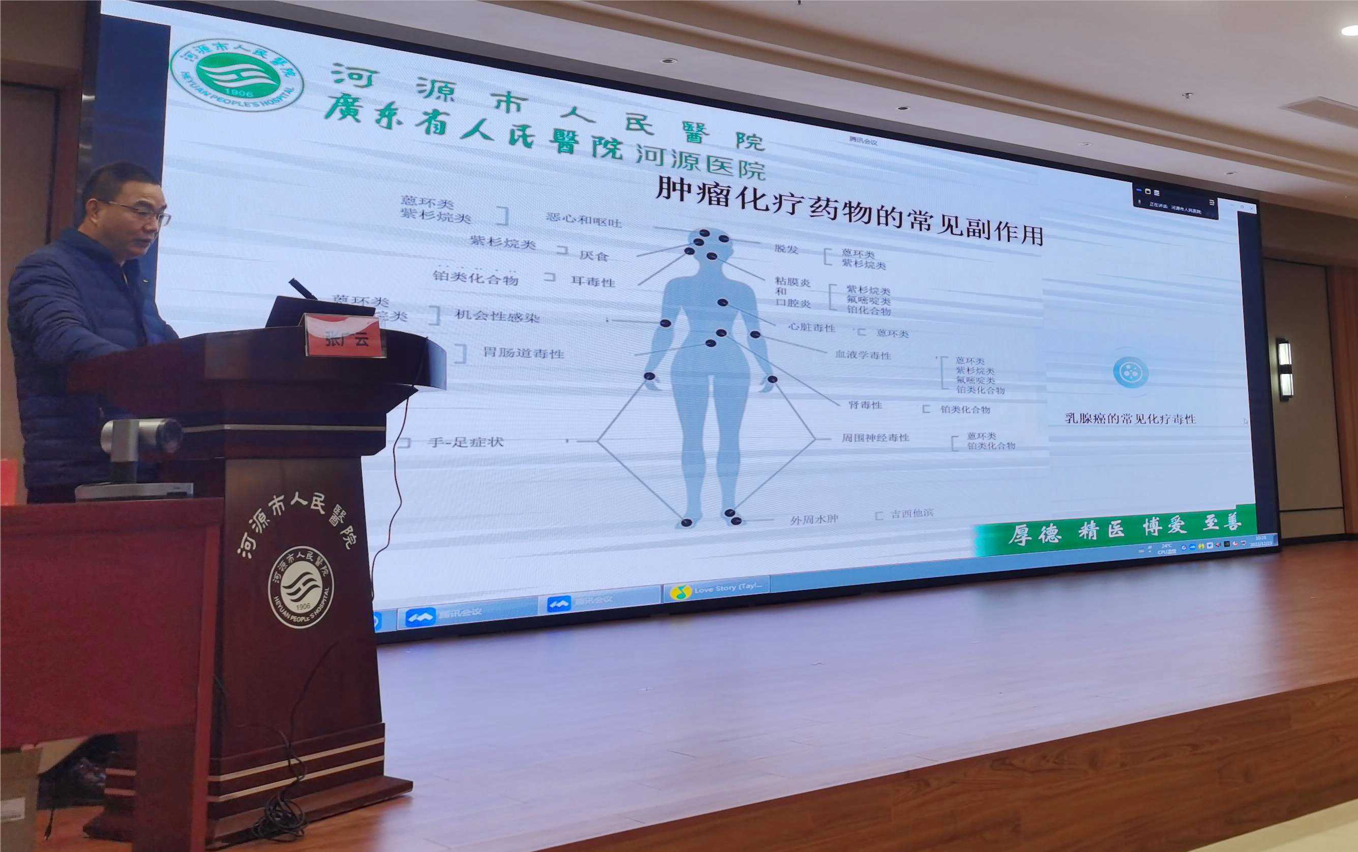 ▲惠州市中心人民医院乳腺外科副主任黄宇康授课