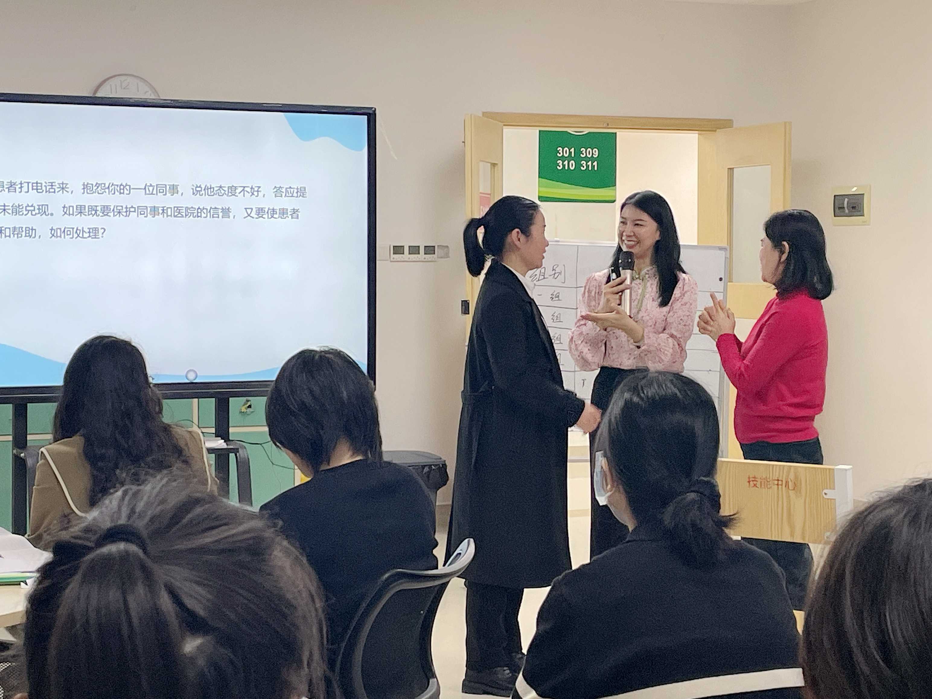 围绕有效沟通、社交礼仪、问题的解决及决策等内容,老师进行了深入的讲解并设置抢答环节、互动环节、模拟情景、案例练习等方式,让学员们受益匪浅。其中《就医》小品剧、撕纸游戏和快乐传真等案例,真实还原我们工作中常见的沟通情景,让护士在模拟练习中体验患者的感受、学会换位思考,生动形象的表演是辛苦工作后的减压,更是直面自我,反省自我的折射镜。“我这样说或者我这样做,患者是不是会更容易理解,患者的就医体验是不是就会有不一样的感受?”