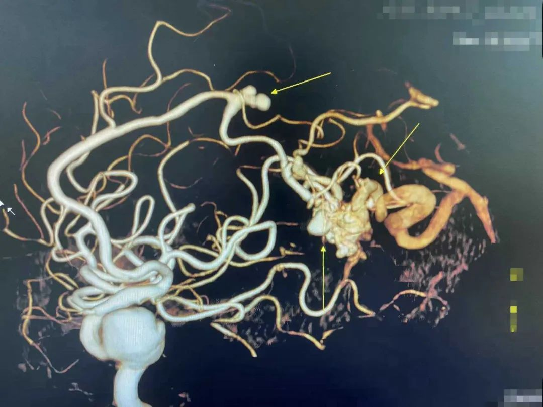 近日,一位患者因脑出血辗转到我院神经外科就诊,入院后完善颅脑CT、CTA等检查,诊断考虑:颅内巨大多发动脉瘤合并脑动静脉畸形破裂出血,再次出血的风险极大,患者高龄,手术难度大,风险高,且患者家属经济困难。