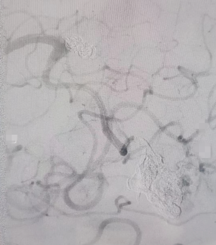 ▲致密填塞的动脉瘤及动静脉畸形