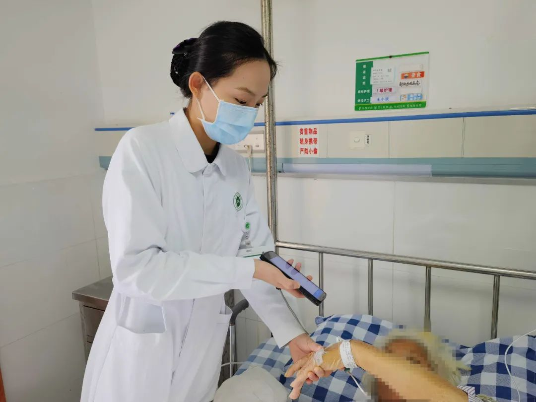 我院全面上线移动护理PDA和电子护理白板。住院部护士站全部采用电子护理白板替代传统的手写白板。护理人员手持PDA设备扫描患者腕带上的条码,即能获取患者的医嘱信息,并完成医嘱执行。这一举措极大地提高了护理质量和工作效率,为护理工作插上了信息化的翅膀,使我院智慧医院建设再上新台阶。