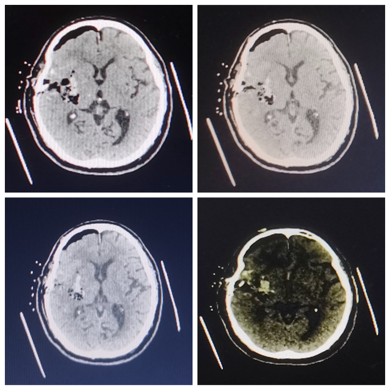 76岁的古大爷因“突发左侧肢体乏力伴言语不清3小时余”入院,进行头颅CT检查示“右侧基底节区、岛叶急性脑出血”收住我院神经外科一区,我科主任杨建雄、副主任医师郑达理手术团队进行术前讨论:如果选择以往的开颅去骨瓣减压治疗手术,不但切口大、时间长,而且会对周围脑组织造成较大的损伤,患者家属担心老人能否承受开颅手术;除此之外,在局麻下行脑内血肿穿刺置管引流术,可能存在血肿清除效果缓慢,且引流不彻底等情况,一旦出血增加,需要再次选择开颅手术,造成不可逆的损伤。