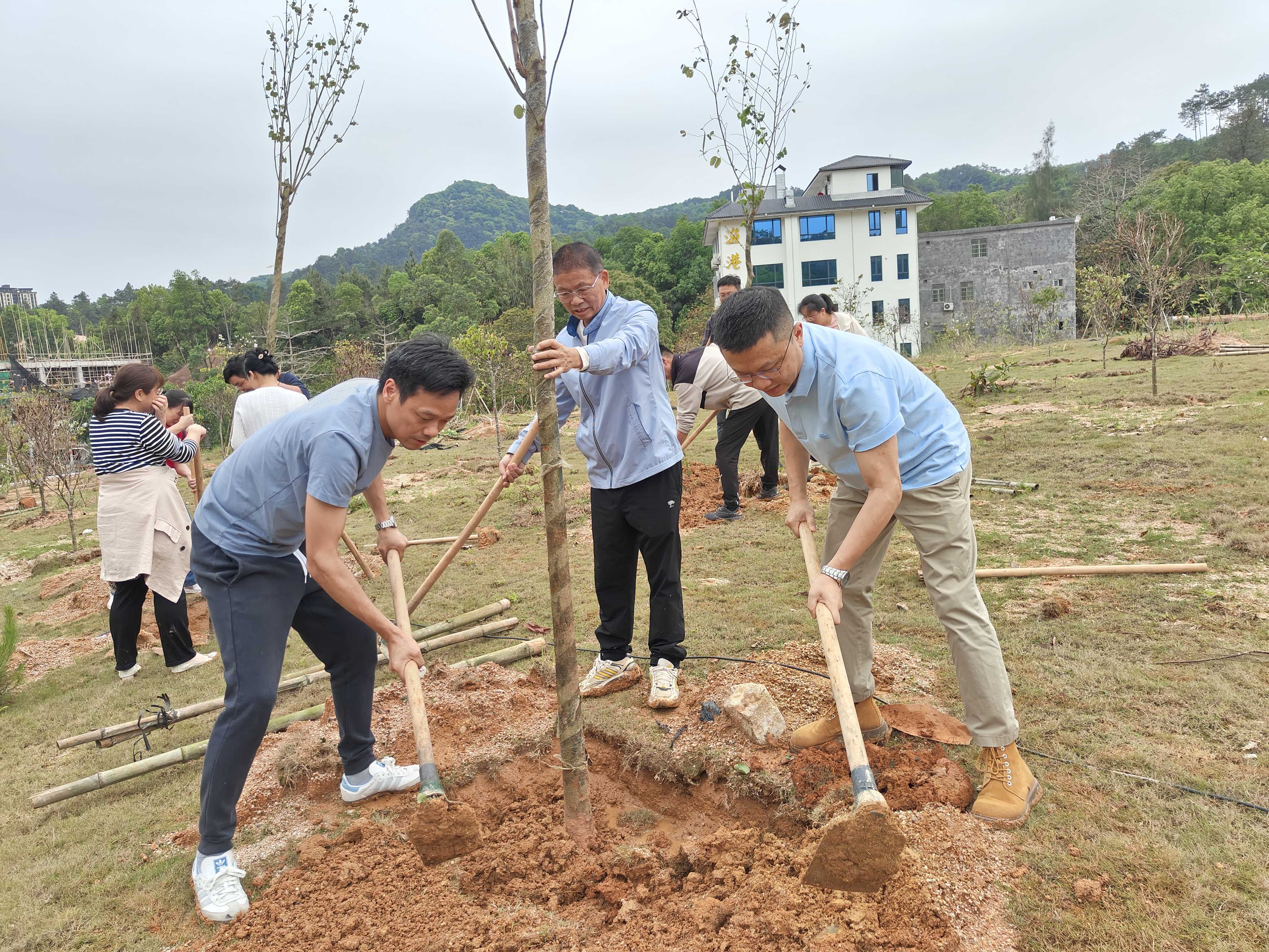 何院长见大家热情高涨,深有感触地说,正所谓十年树木,栽种盎然春意;百年树人,培养蓬勃精神。今天我们种下一棵棵小树苗,体现帮扶专家们用情美化环境的初心,为河源营造更加优美的环境,为“万绿河源”增添春意,也蕴含着我们省医帮扶专家的一份特殊责任--践行用心提升医疗技术和培养医学人才的帮扶承诺和使命。人才培养就像种植树苗一样,需要不断地“培土浇水”,才会蓬勃生机、傲然挺立。希望我们今天种下的树苗能够扎根于此并茁壮成长,早日成林。