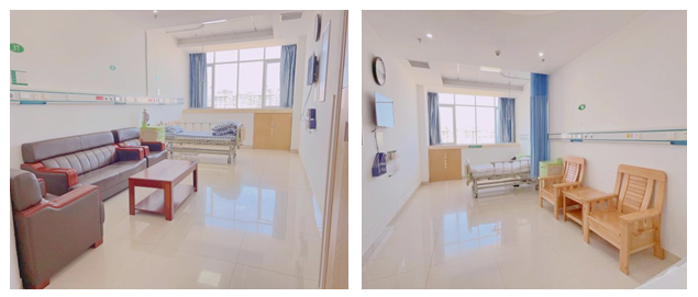 科室病房目前有单间(长照病房)、及三人间,开放床位38张,科室配备有心电监护仪、心电图机、心脏除颤仪、无创呼吸机、床边呼叫器、中心供氧、中心吸痰、输液泵、胰岛素泵、振动排痰仪、动态心电图检测仪等先进的诊疗和监护设备,病区内设有轮椅、车床、一站式出入院结算机、陪人床、便民箱(内含老花镜、针线、一次性水杯、指甲剪等)等便民措施,病房内设有蹲厕及坐厕两种形式,可满足患者不同住院需求,为患者提供医疗、护理、精神慰藉等全方位服务,让患者安心、舒心。