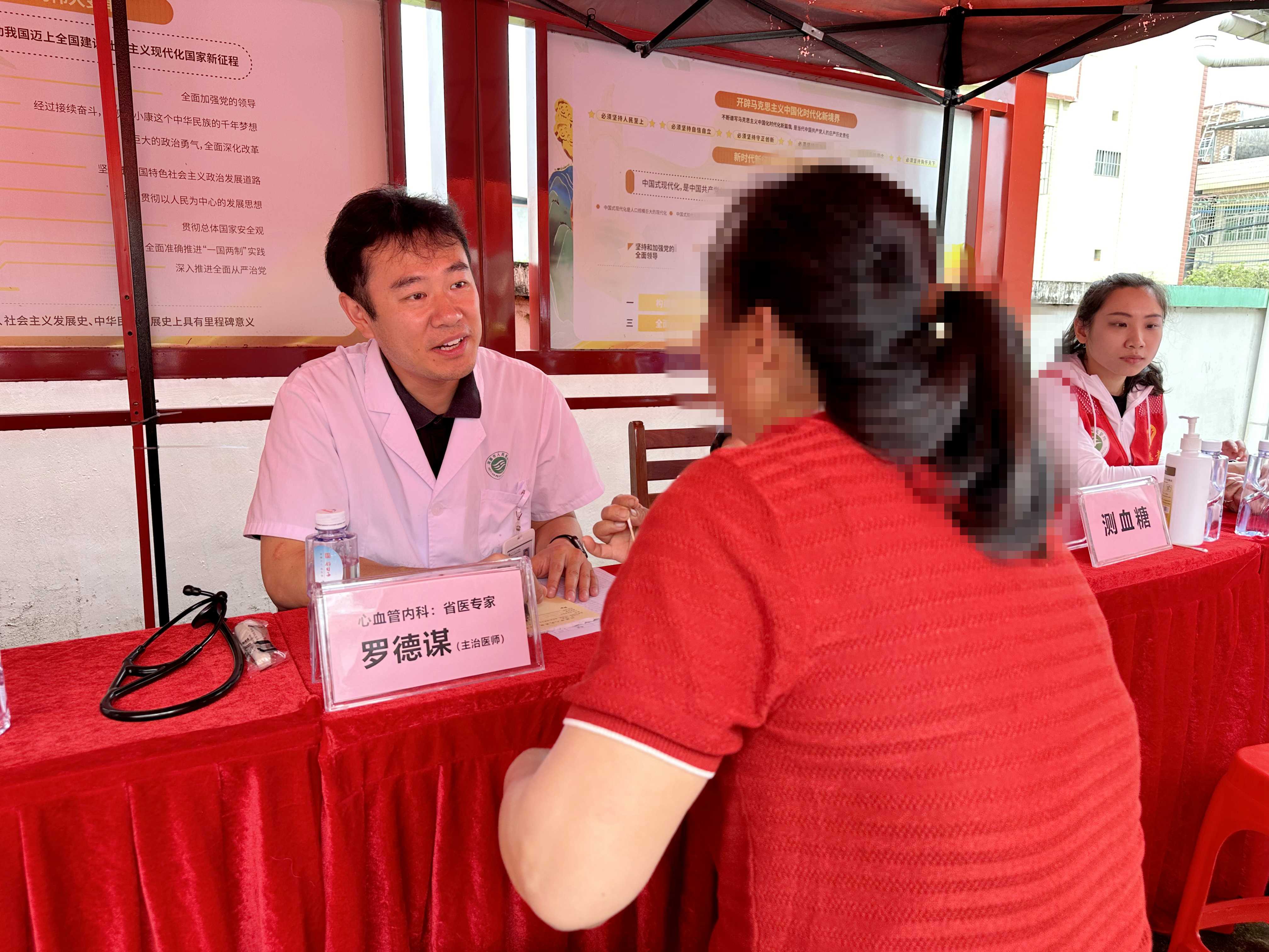 当天上午,专家们耐心细致地向每一位前来诊疗的群众解答各种问题,并提出诊断意见、开具处方,现场送医送药,让群众在家门口就可以享受到省医专家团队专业的医疗服务和健康咨询。镇村“两委”干部、医院党团员志愿者在一旁帮忙维持秩序,期间对群众进行《民法典》普法、《河源市文明行为促进条例》宣教,帮助老人们更为深入地了解相关法律法规政策内容,进一步提升自身法律知识和自我保护能力。