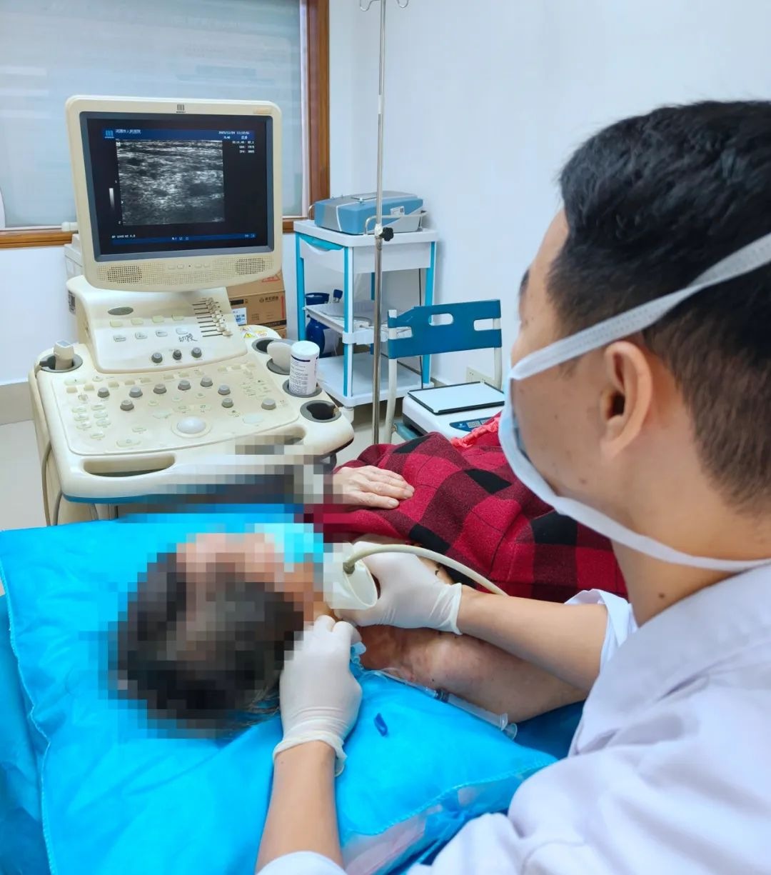 穿刺时使用超声引导,在可视条件下细针进行操作,可以清晰显示颈部软组织、血管、神经,实时引导穿刺针到达椎前筋膜深部,重要组织损伤几率降低,既无辐射,又安全有效,并发症少,更舒适。