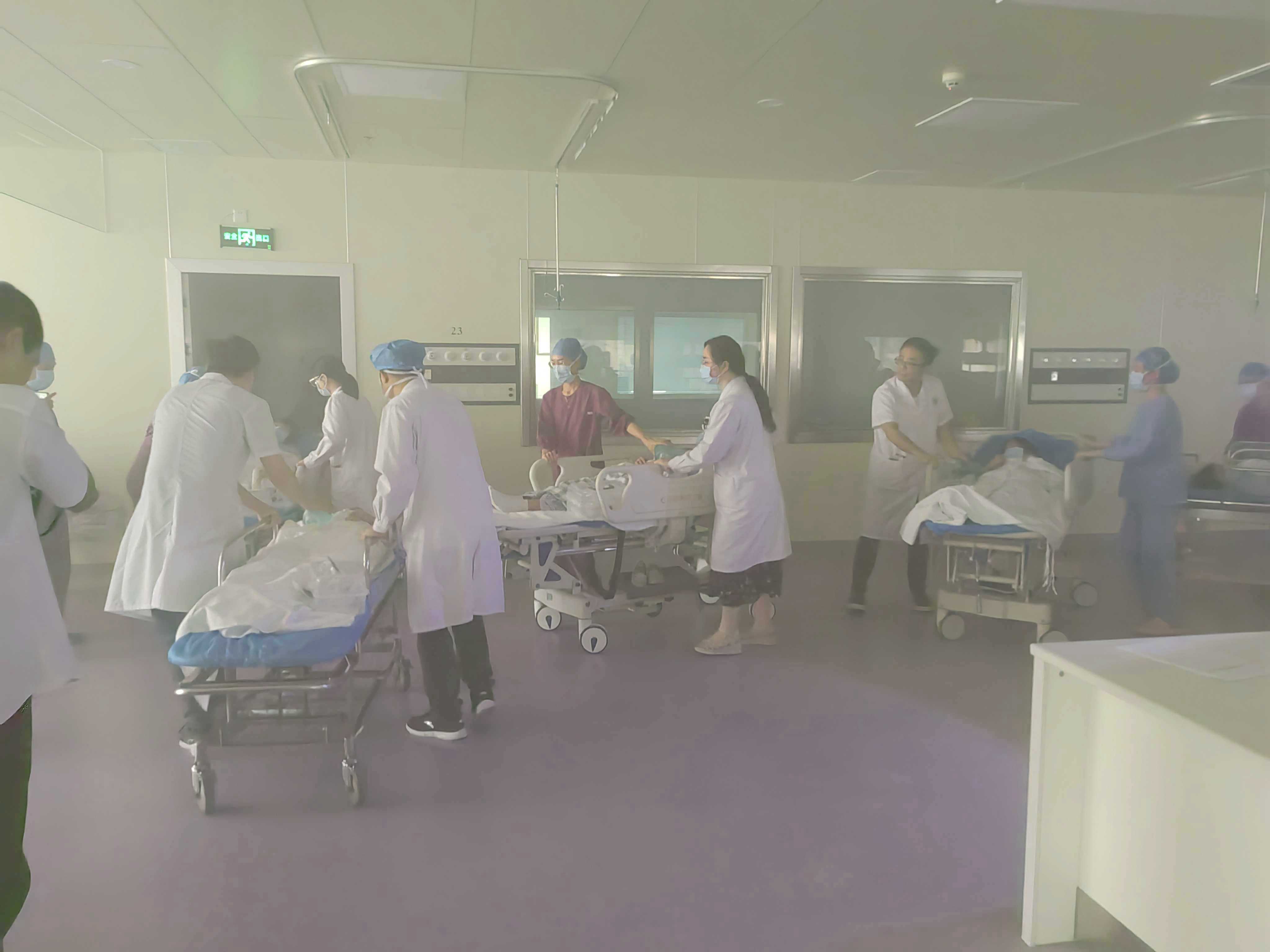 灭火行动组迅速穿戴装备并在3分钟内赶到现场进行灭火;疏散组听到消防广播的呼叫后,在5分钟内从各自的岗位赶到重症医学科A病区,协助重症医学科将全部住院病人疏散到室外安全区域,之后再将重症患者通过疏散通道转移到接收病区安置,医务人员在将患者安置到位后立即开展救治工作;后勤保障组在听到呼叫后立即运送生命支持设备前往接收病区,确保抢救设备的到位,不影响重症患者的救治。