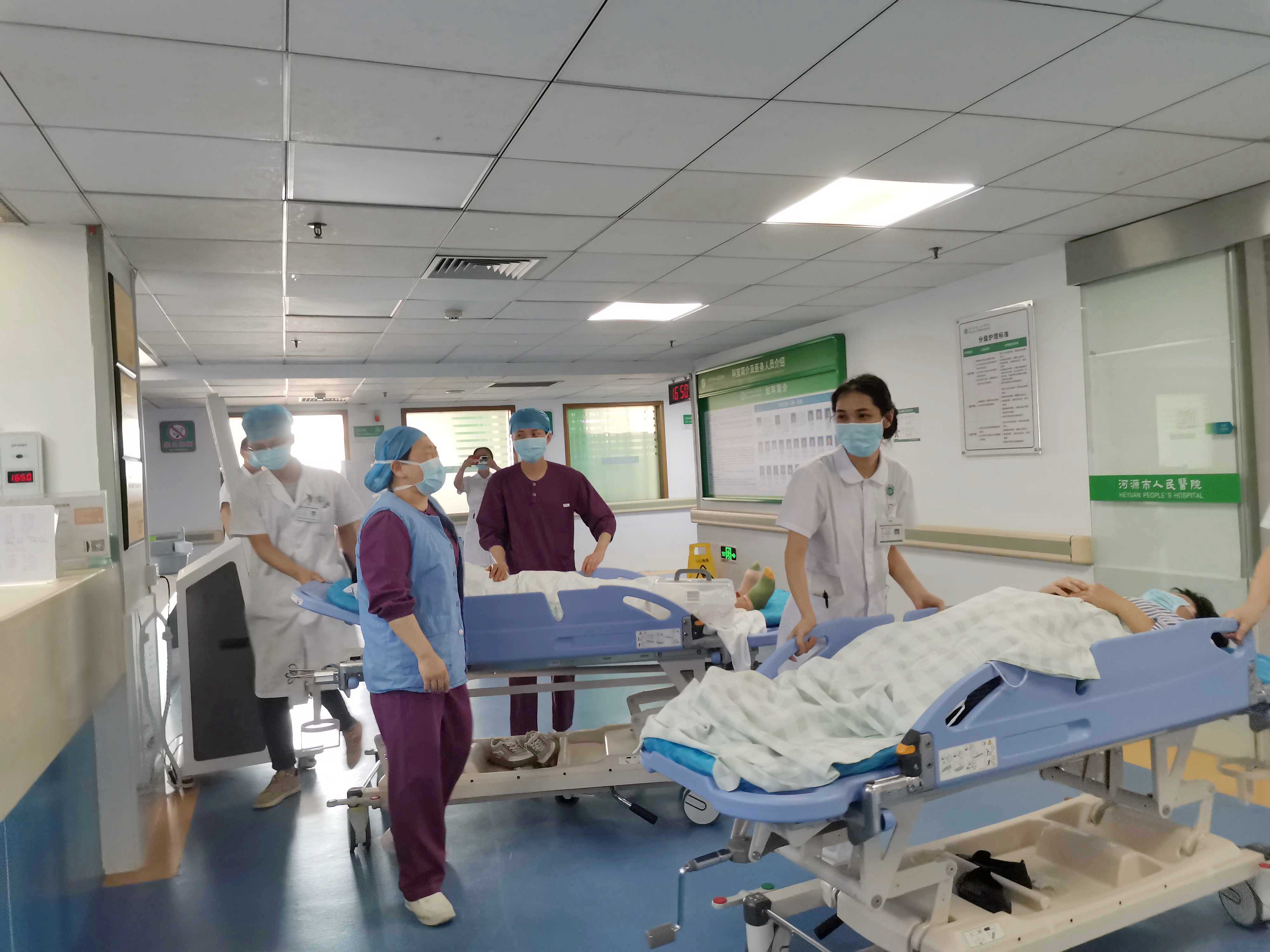 此次演练模拟内科楼三楼重症医学科A病区发生火情,护士在值班巡查时发现火情,立即按下手动报警按钮,拨打医院消防监控室电话报告火情,同时利用灭火器材对初期火灾进行灭火,消防监控室接到报警并确认火情后,立即启动院级消防应急预案,各应急小组接到通知后,按照预案流程紧急开展救援。
