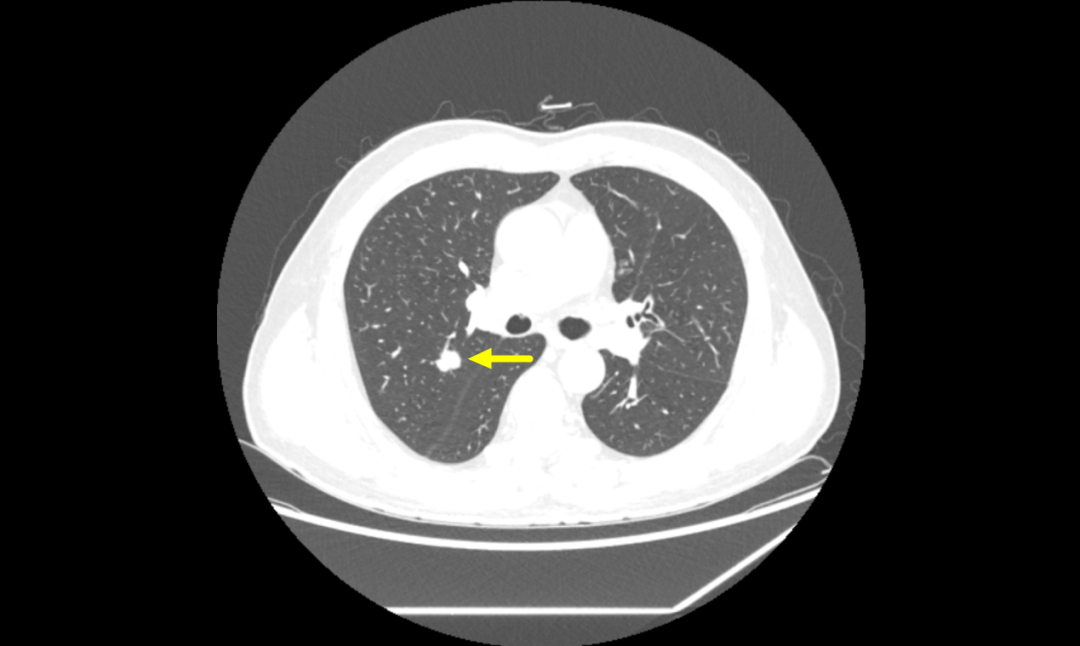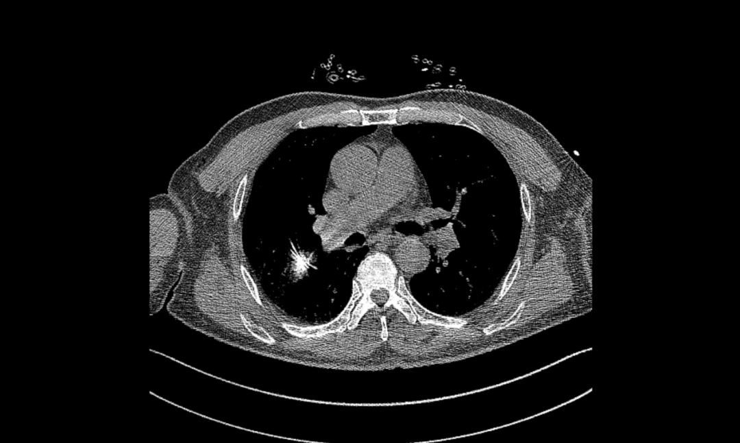 ▲微波消融术后复查胸部CT