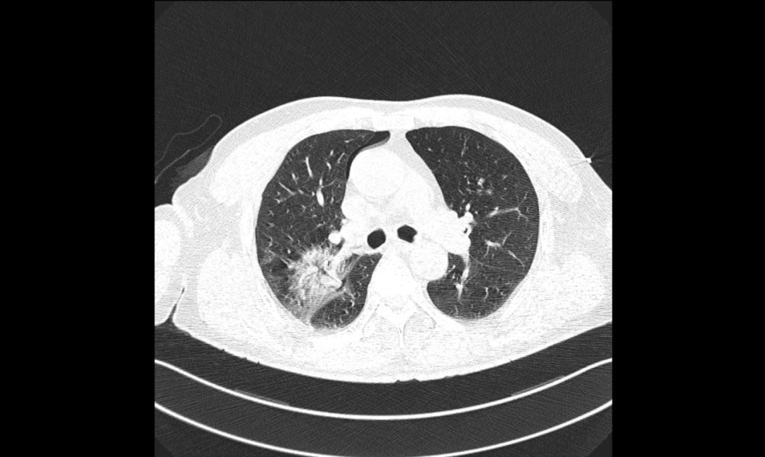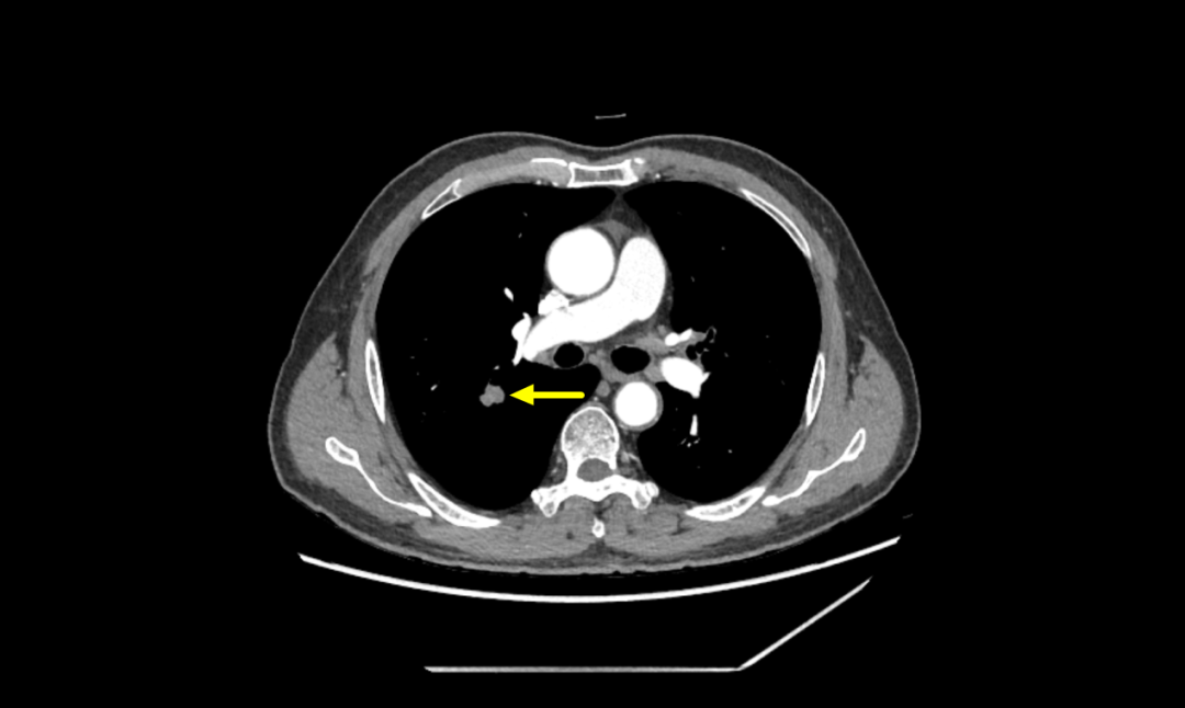 ▲胸部增强CT提示右肺结节,恶性可能性大
