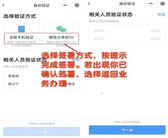 6.父母双方进行身份验证,当新生儿父亲不在身边时,可以选择“微信分享给TA”进行人脸识别验证。