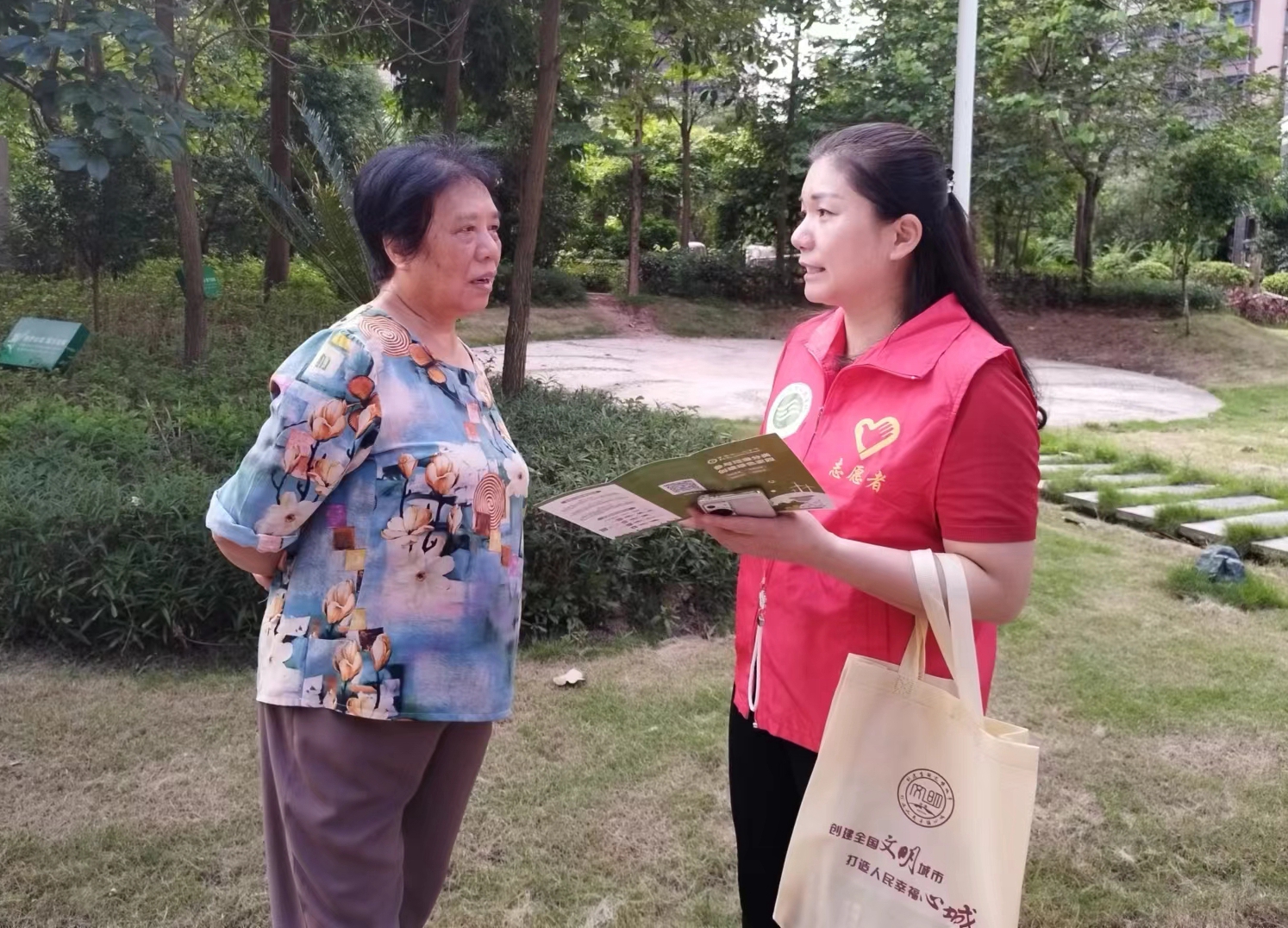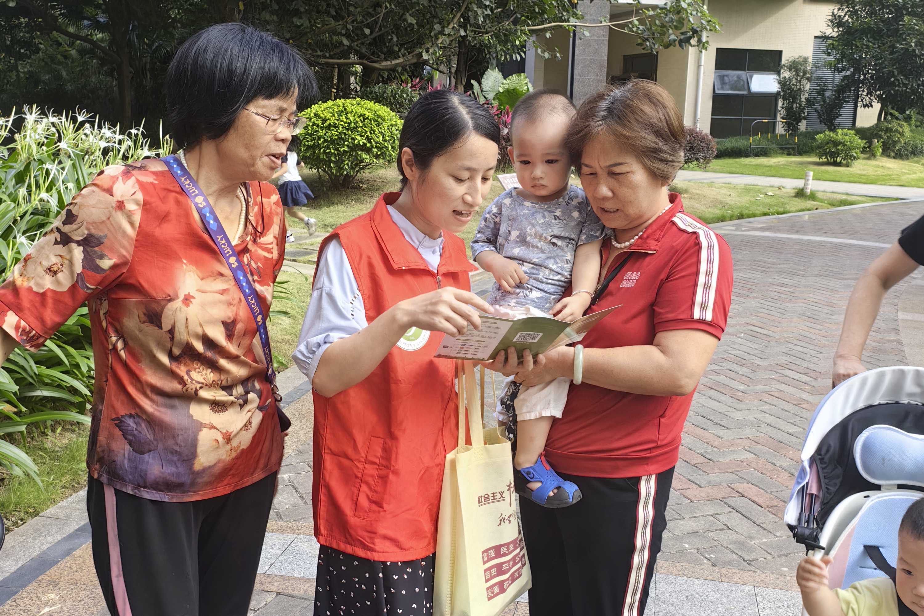 ▲党员志愿者向社区居民普及垃圾分类知识