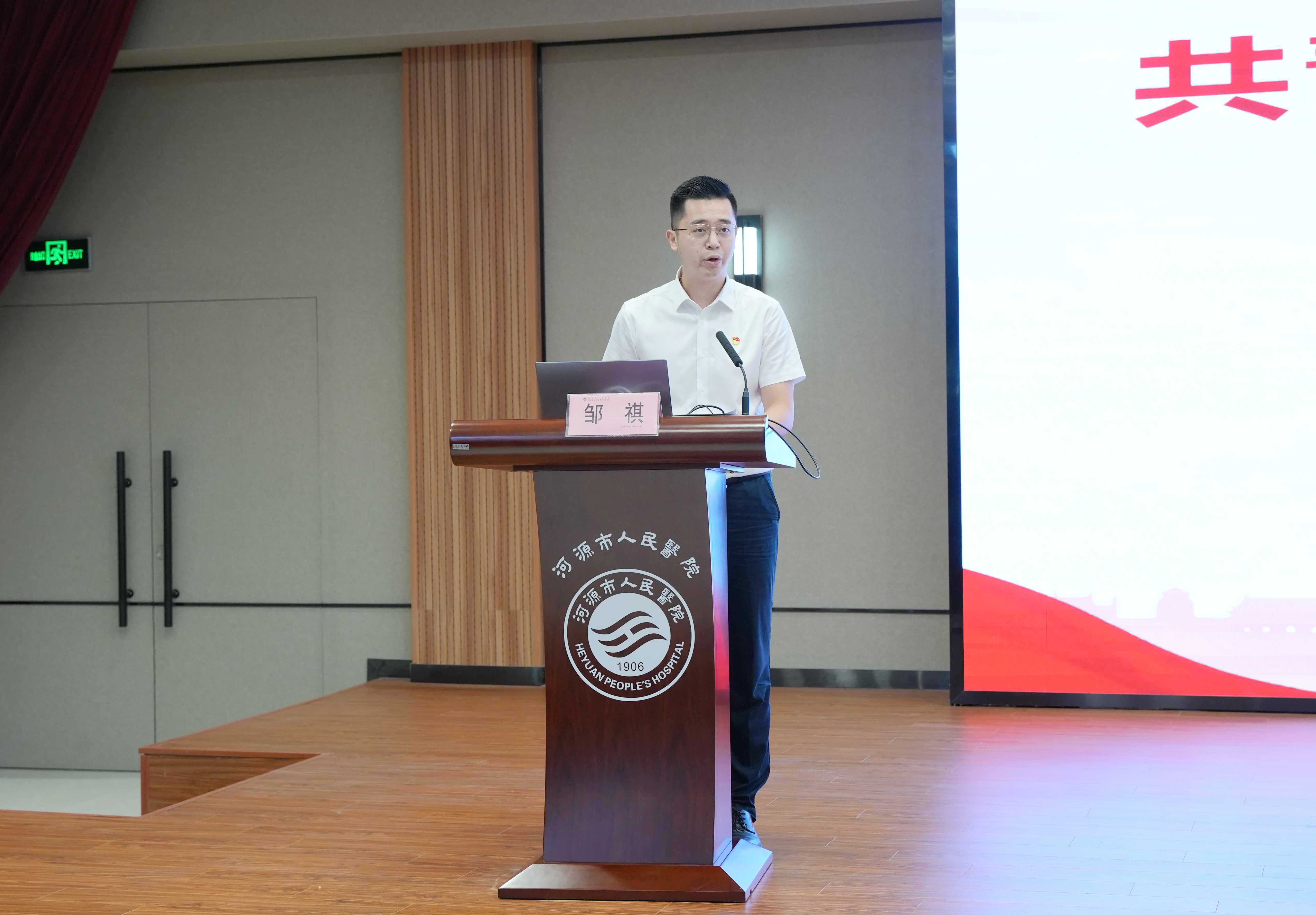 新当选院团委书记邹祺作表态发言。他表示,感谢院党委及团员青年的信任与支持,新一届院团委将在院党委和团市委的坚强领导下,团结广大团员青年,紧密围绕医院中心工作,不断强化理论学习、提高服务本领、丰富活动形式,给青年职工“带好头”“把好舵”,为新时代医院高质量发展新征程添彩助力。