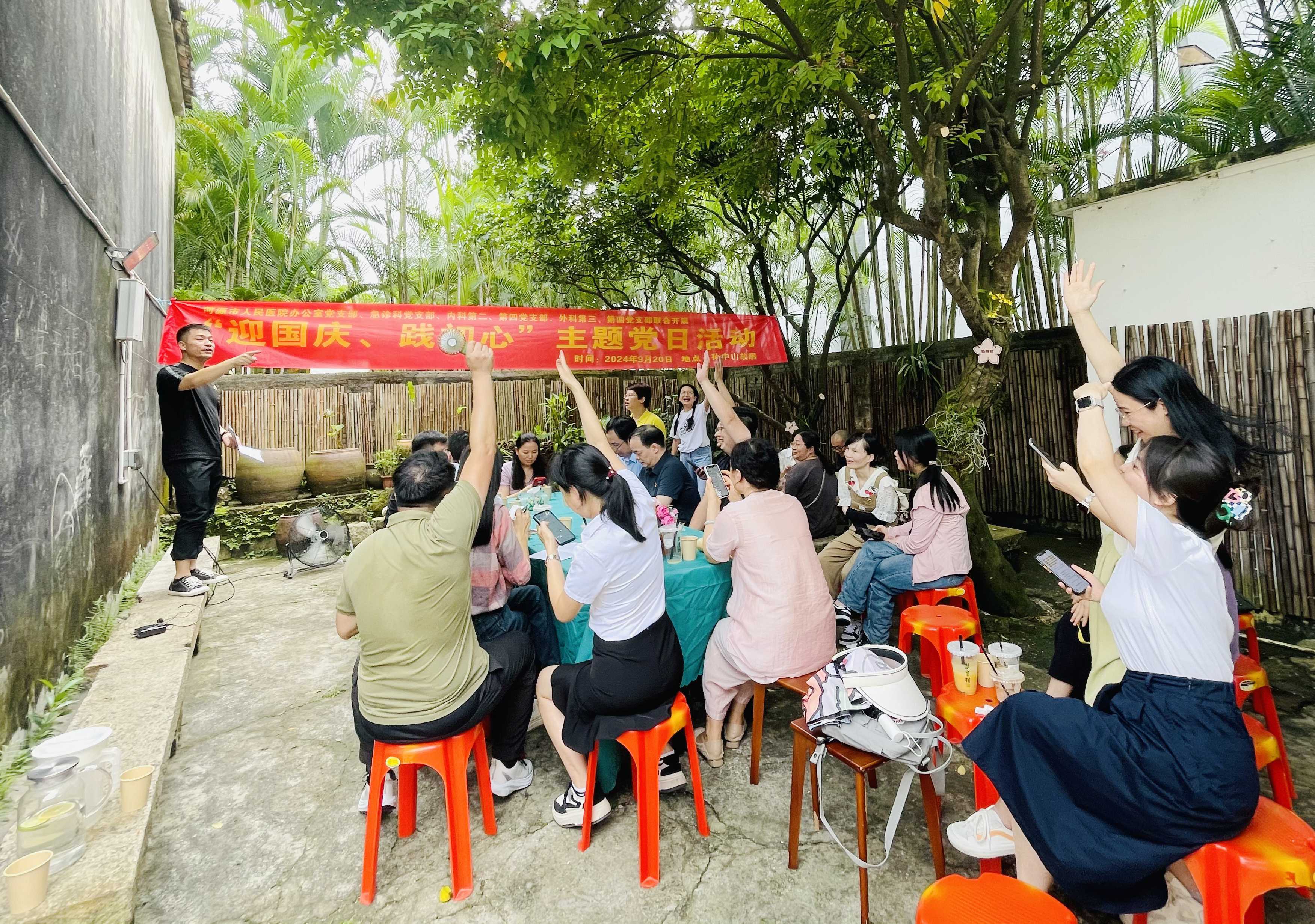 为全面贯彻落实党的二十届三中全会精神,深刻领悟“两个确立”的决定性意义,深化中国特色社会主义中国梦宣传教育,在庆祝中华人民共和国成立75周年来临之际,我院办公室党支部、急诊科党支部、内科第二、第四党支部、外科第三、第四党支部前往中山市孙中山故居开展学习宣传贯彻党的二十届三中全会精神主题党日活动。