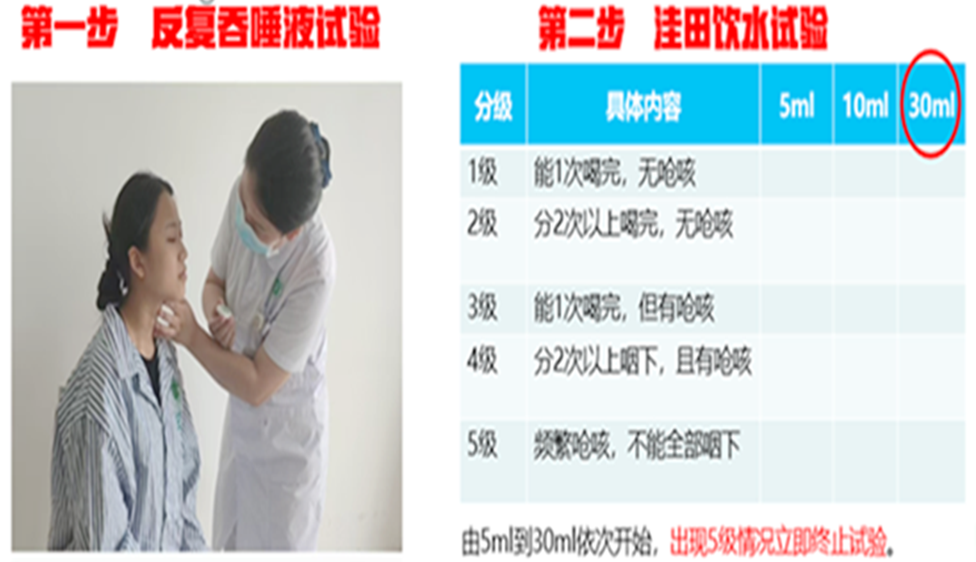 临床上常用重复唾液吞咽试验(RSST)、容积黏度吞咽测试(VVST)、洼田饮水试验、纤维鼻咽喉镜检查(FEES) 、高分辨率咽腔测压(HRM)以及吞咽造影检查(VFSS)对疑似吞咽障碍患者进行检测,其中重复吞咽实验(RSST)与洼田饮水实验因其经济实惠、操作简便,简单有效成为临床最常用的初步筛查方法,吞咽障碍吞咽造影检查(VFSS)则为诊断吞咽障碍的金标准,是排除误吸风险,降低肺炎的发生率的首选检测方法。