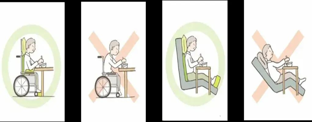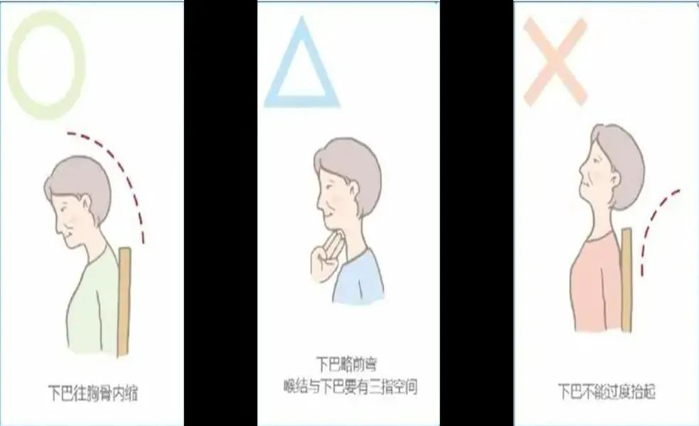 ②避免进食时下巴过度抬高或头部后仰,减少噎食和误吸风险。