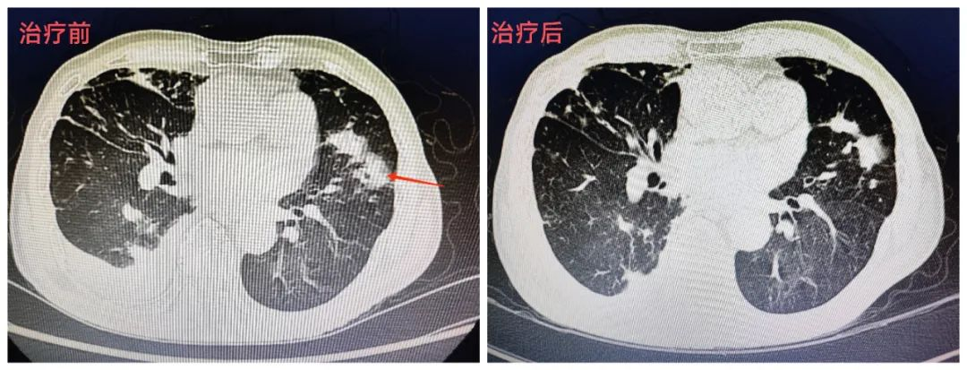 75岁的周先生,近期无明显诱因出现反复发热、咳嗽、咳痰,伴右侧胸痛。起初在外院因腰痛住院,经治疗后腰痛症状好转,又开始出现发热,伴咳嗽、咳痰,咳嗽时伴有右侧胸痛,经完善胸部CT等相关检查检验,初步考虑“肺部感染”,经抗感染治疗一周后仍有发热,遂来我院就诊。