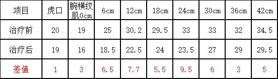 今年6月到我院就诊,经过医生及淋巴水肿专科护士的评估,诊断为 “乳腺癌相关淋巴水肿”。在排除患侧上肢血栓、感染及肿瘤复发转移的情况后,我们提出 “淋巴水肿综合消肿” 治疗方案。淋巴水肿专科护士测量她的双上肢臂围发现:双上肢前臂臂围最大相差9.2厘米,上臂臂围最大相差10.5厘米,且患者皮肤毛孔粗大,皮下组织僵硬。经过一个疗程的治疗,左上肢前臂臂围较治疗前最大缩小7.7厘米,左上肢上臂臂围较治疗前最大缩小9.5厘米,皮下组织触感也变得柔软。