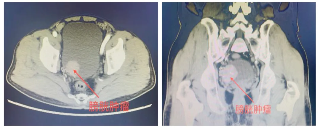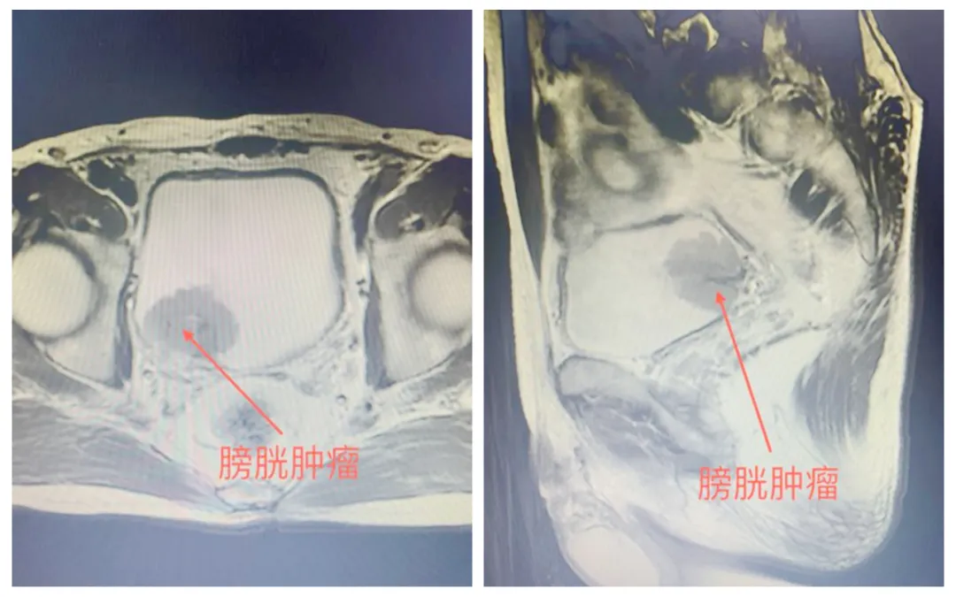 患者入院后完善下腹部+盆腔增强CT提示:膀胱右侧壁占位,考虑膀胱恶性肿瘤并侵犯右侧输尿管膀胱壁内段。进一步完善盆腔增强磁共振提示:膀胱右后壁可见一菜花状向腔内生长软组织肿块,大小约36mmX30mmX35mm,病变覆盖右侧输尿管膀胱壁内段,进一步完善膀胱镜活检提示:膀胱乳头状尿路上皮癌,浸润肌层。患者家属听闻膀胱肿瘤侵犯肌层需切除整个膀胱,并可能需要长期留置造口袋引流尿液后十分担心,向毕学成主任提出能否有好的手术方案,既能达到根治肿瘤的效果,又方便患者术后生活的护理。