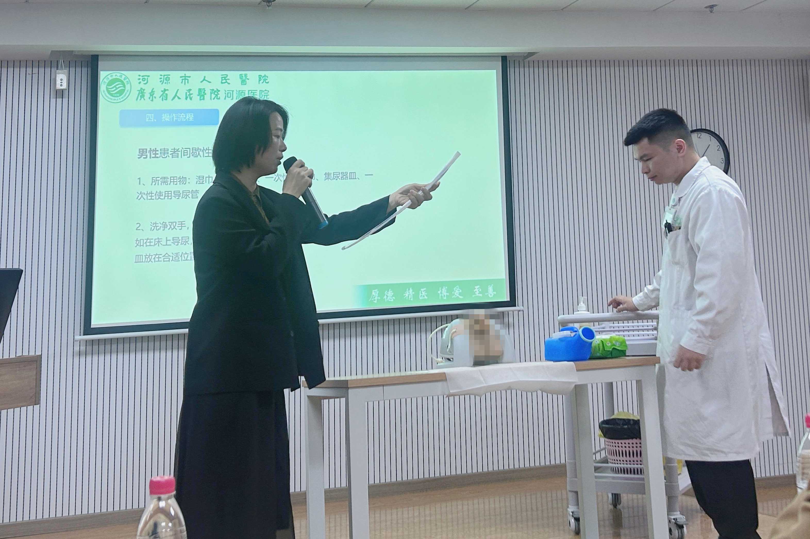 ▲脊柱外科和康复医学科护理团队现场演示间歇导尿技术