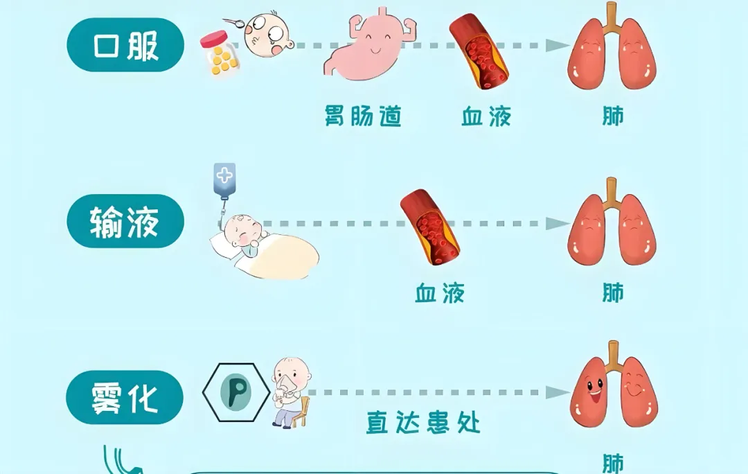 雾化吸入疗法具有操作简单、药物直达病灶、局部病灶药物浓度高、安全性好、毒副作用小等优点,使药物直接作用于呼吸道,达到止咳、消炎、解痉,稀释痰液的目的。