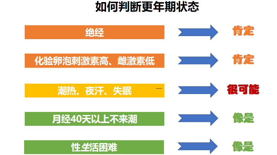 但不是所有的月经异常都是更年期造成的。需联合性激素的测定就可以确认及评估更年期状态。