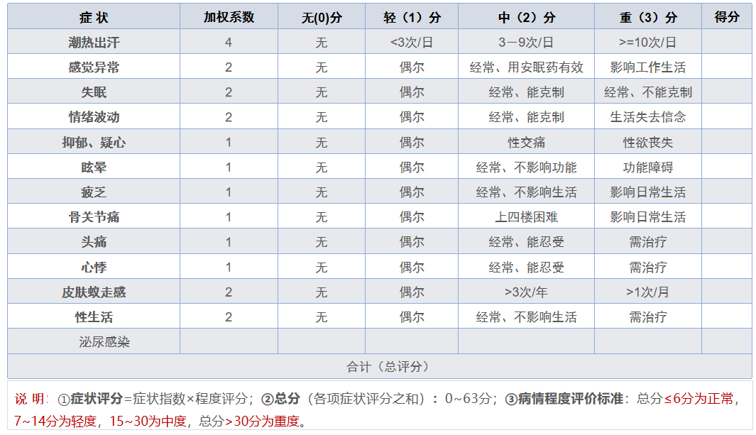 2.女性“更年期”自我诊断评定表