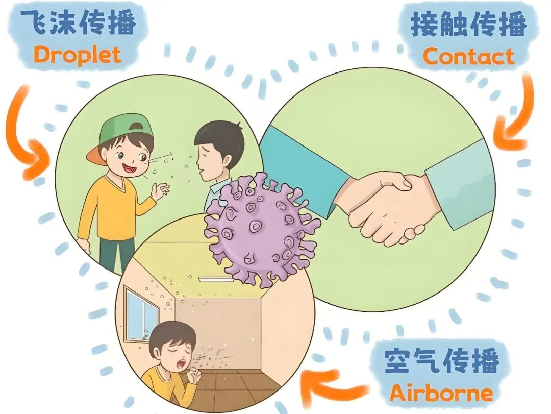 1.传播方式:①飞沫传播(咳嗽、打喷嚏);②接触被病毒污染的物体表面(如玩具、门把手);③手接触口鼻眼后感染。