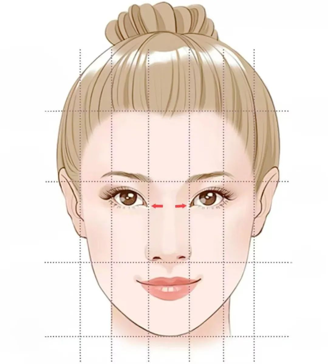 1.鼻翼宽度。两鼻翼外侧缘的距离应与内眦间距相等,大约为面部宽度的五分之一。