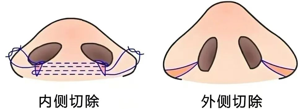 鼻翼缩小手术主要分为以下两种方式: