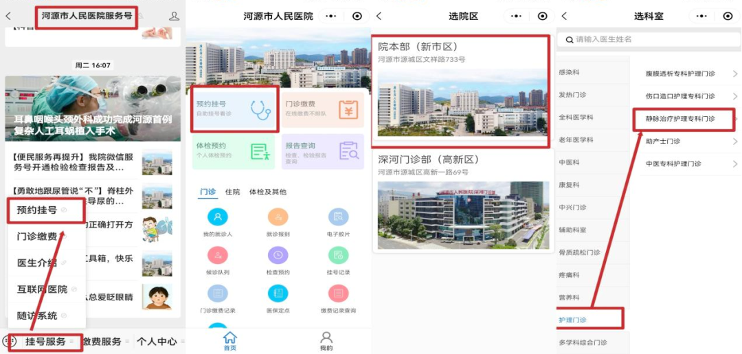 预约挂号方式:关注“河源市人民医院服务号”,点击挂号服务→预约挂号→院本部→护理门诊→静脉治疗护理专科门诊,即可预约。