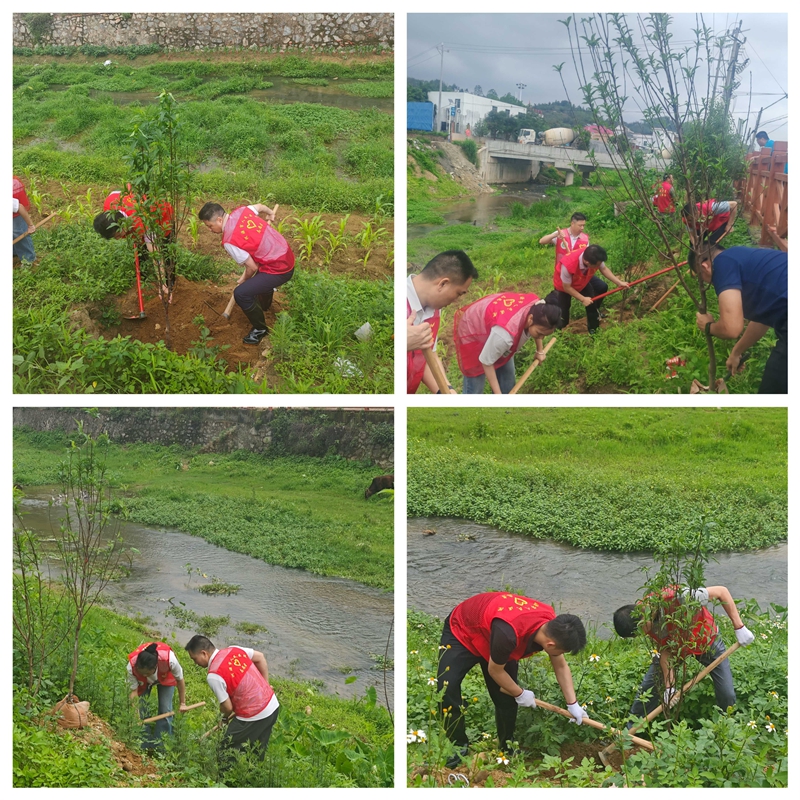 为深入贯彻习近平生态文明思想,落实省委、市委关于推进绿美广东生态建设有关部署,积极响应“植绿爱绿护绿兴绿”活动的号召,同时紧扣健康中国战略,将优质医疗资源送到基层群众身边,5月8日,我院党委组织党员志愿者及医护人员共20人赴龙川县廻龙镇开展“植绿爱绿护绿兴绿”植树活动与“乡村振兴路,健康第一步”下乡送药义诊活动,以实际行动为乡村增添绿意,为村民送去健康关怀。