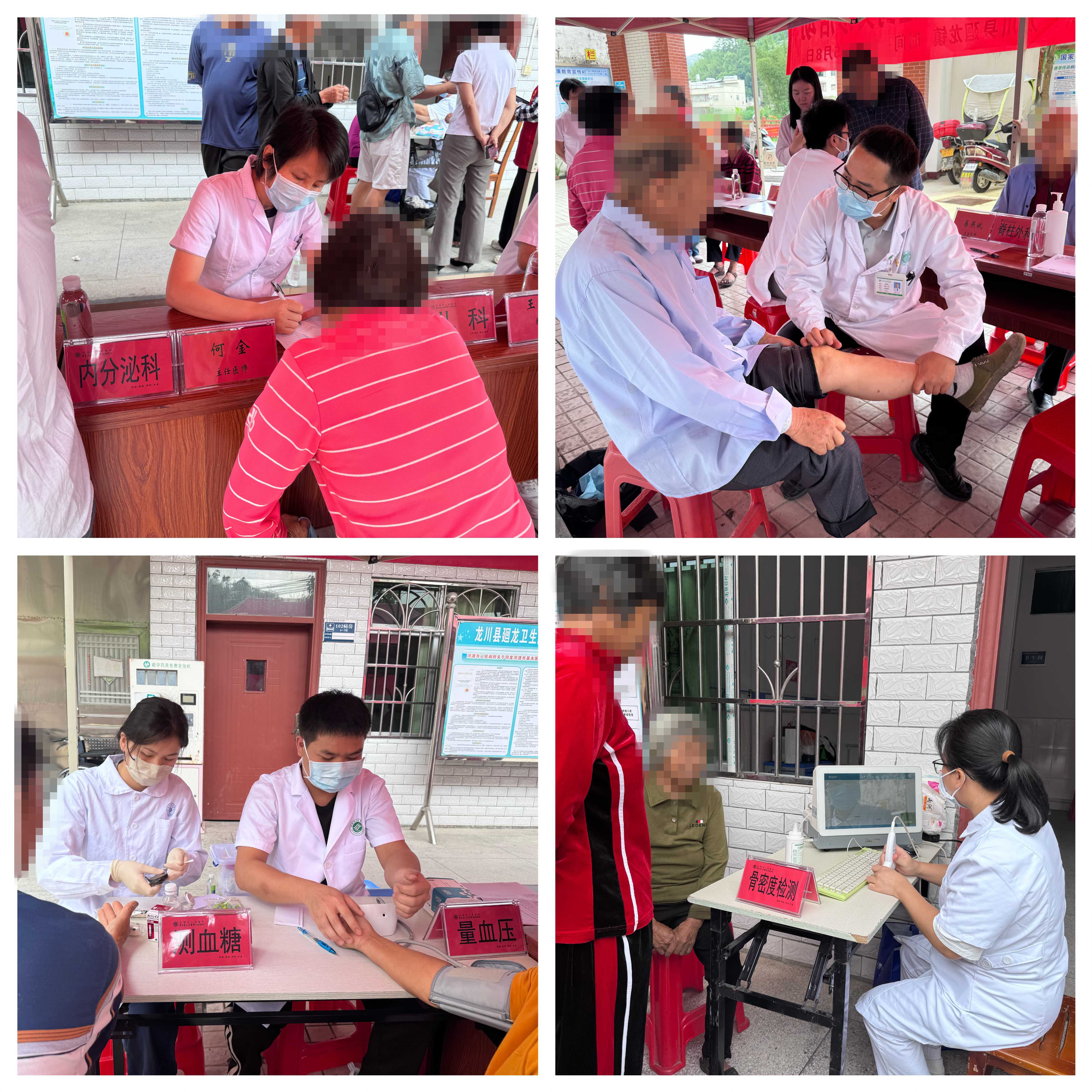 与此同时,下乡送药义诊活动也在龙川县廻龙镇卫生院如火如荼地开展,参加本次活动的有我院内分泌科、心血管内科、脊柱外科、普通外科、儿科、感染科、药学部7个科室组成的医疗团队,为村民们提供免费的健康检查、疾病诊断、用药指导以及骨密度检测、测量血压、血糖等项目。活动现场,前来就诊的村民络绎不绝,医生们耐心询问病情,仔细进行检查,针对不同病症和个体差异,给出专业、精准的治疗建议和健康生活指导。医护人员还为村民免费测量骨密度、血压、血糖,发放常用药品,并积极普及健康知识与疾病预防措施,让村民们在家门口就能享受到优质的医疗服务。