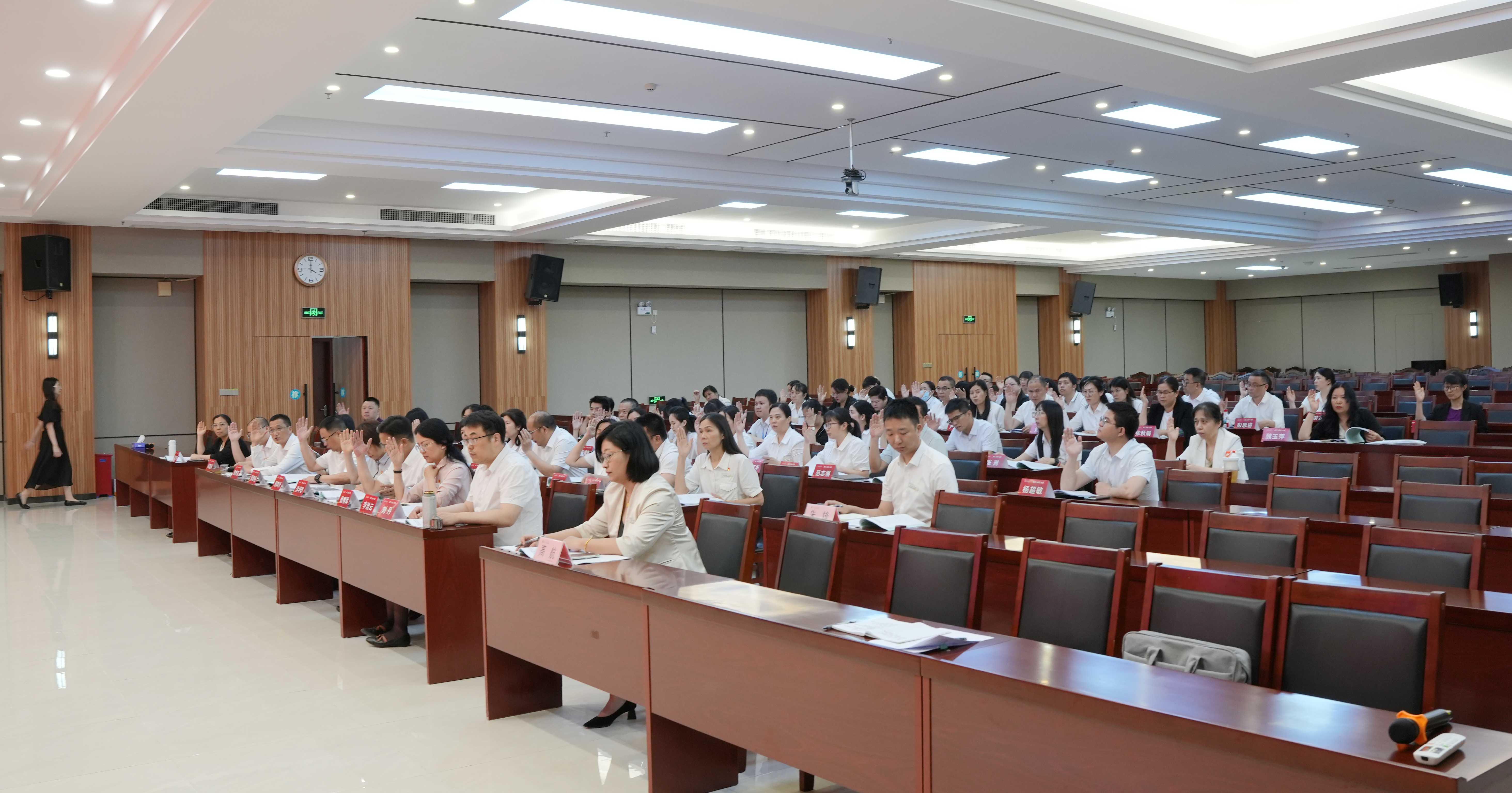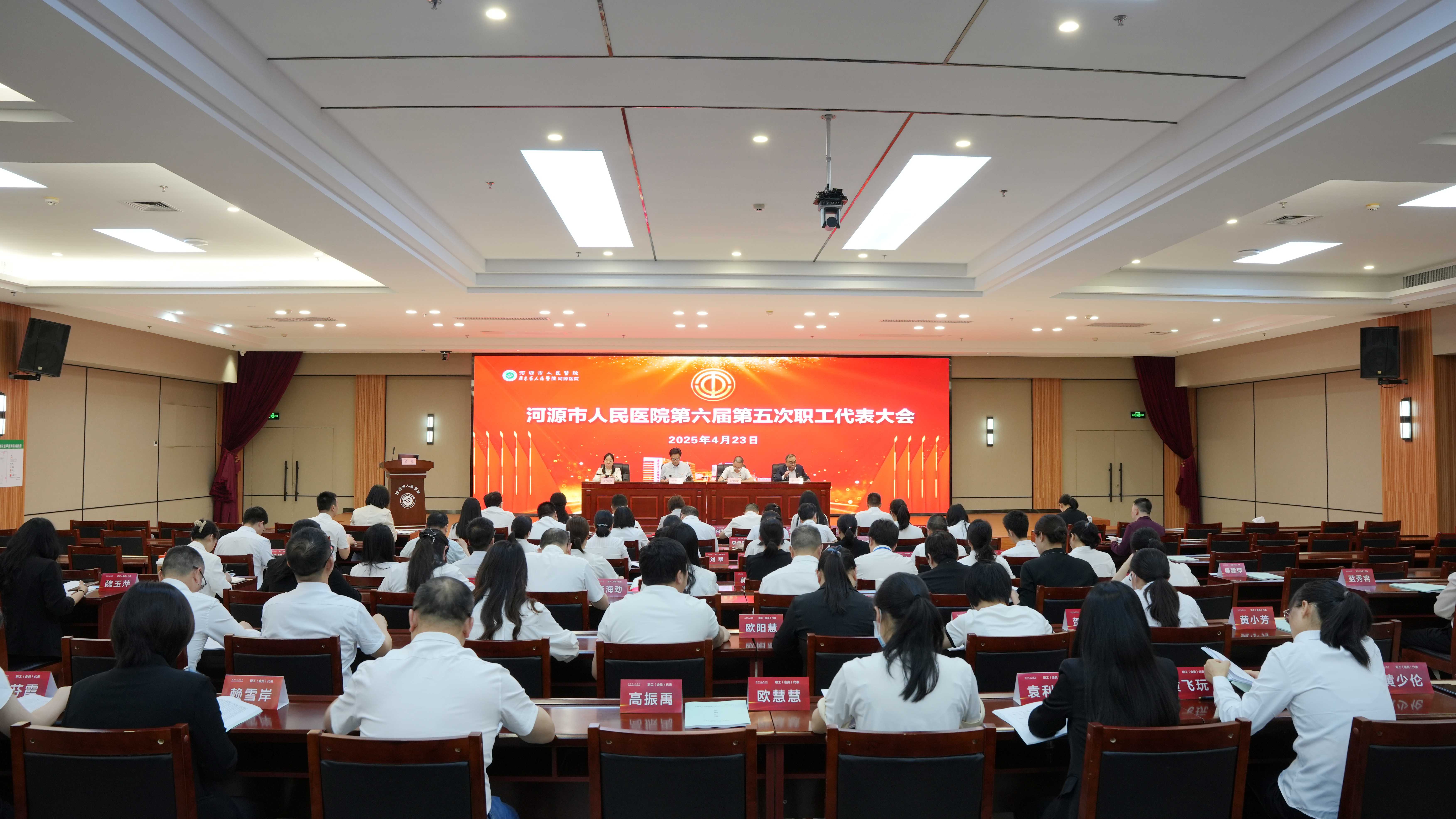 4月23日下午,在庄严的国歌声中,我院第六届第五次职工代表大会隆重召开。院党委副书记、院长何鹏程,院党委委员、副院长、工会主席贺锦堂,总会计师王仲姮出席会议。来自医院各科室、各岗位的职工代表肩负全院职工的殷切重托,齐聚一堂,围绕医院高质量发展蓝图与职工切身利益,共襄发展盛举,擘画奋进新篇。