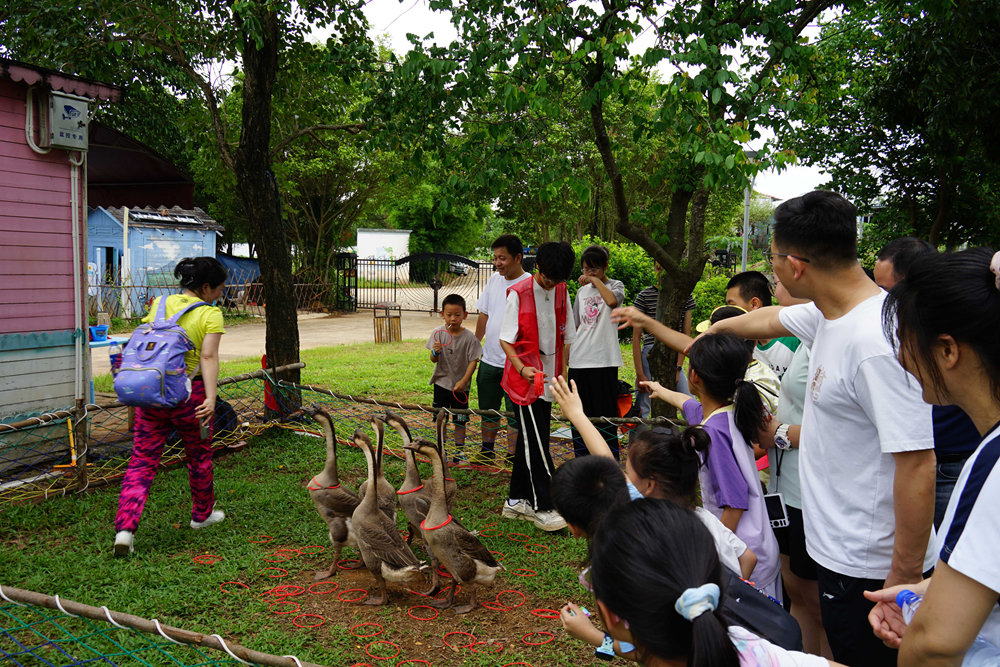 为增进城市孩子与自然和动物的互动,锻炼孩子们的奋斗精神和勇气。活动特别设置“抓鸡体验”“河中摸鱼”“小猪赛跑”等充满挑战性的项目,职工与孩子在自然场景中感受奋斗拼搏的乐趣,不仅增进了亲子之间的感情,加强了沟通,同时也锻炼了身体。无动力乐园的丛林闯关等项目更是成为亲子勇气的“试炼场”,职工与孩子通过穿越障碍、共踩彩虹滚筒,不断克服困难,战胜恐惧,增强信心,取得进步。