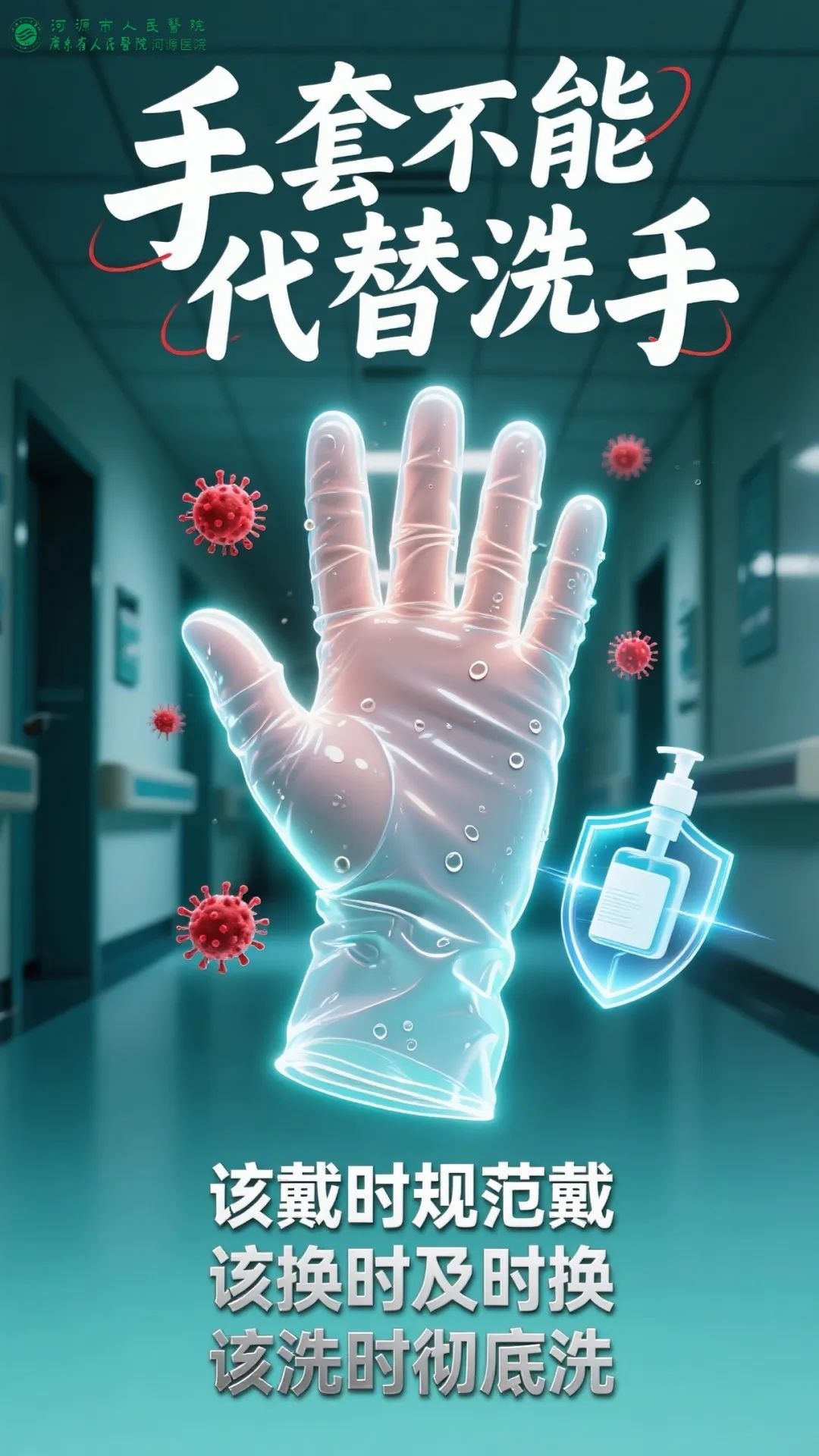 “合理使用手套,关键永远是手卫生”,手套是工具,手卫生是原则;任何情况下,清洁双手都是阻断感染传播不可替代的防线,让我们携手共进,从自身做起,让手卫生成为一种习惯,共同守护医院的健康与安全。
